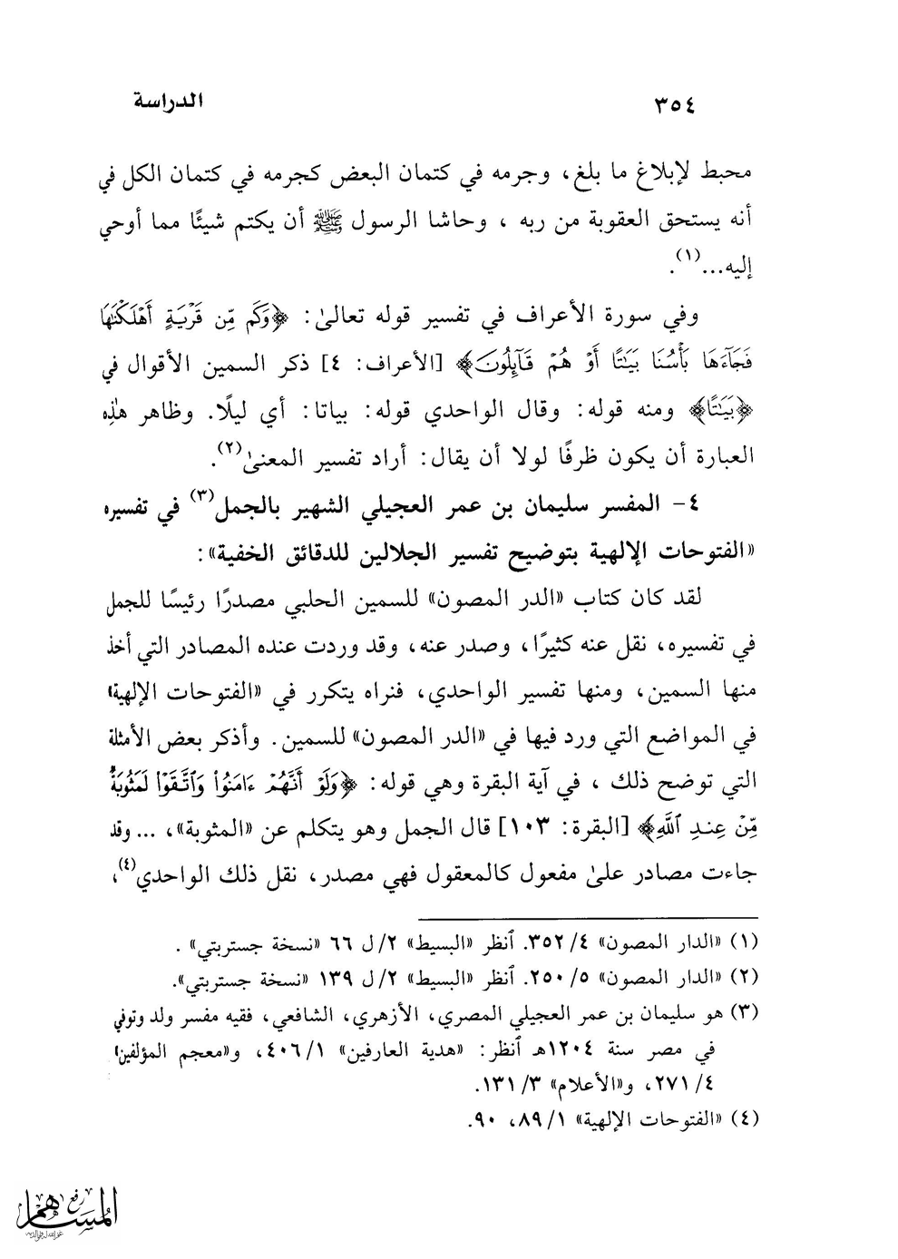 4 - المفسر سليمان بن عمر العجيلي الشهير بالجمل (¬3) في تفسيره "الفتوحات الإلهية بتوضيح تفسير الجلالين للدقائق الخفية":