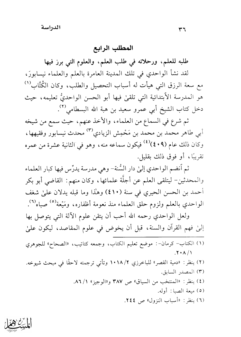 ثم انضم الواحدي إلا دار السُّنة -وهي مدرسة يدرِّس فيها كبار العلماء والمحدثين- ليتلقى العلم عن أجلَّة علمائها، وكان منهم: القاضي أبو بكر أحمد بن الحسن الحيري في سنة (410) وهذا وما قبله يدلان على شغف الواحدي بالعلم ولزوم حلق العلماء منذ نعومة أظفاره، ومَيْعة (¬5) صباه (¬6).