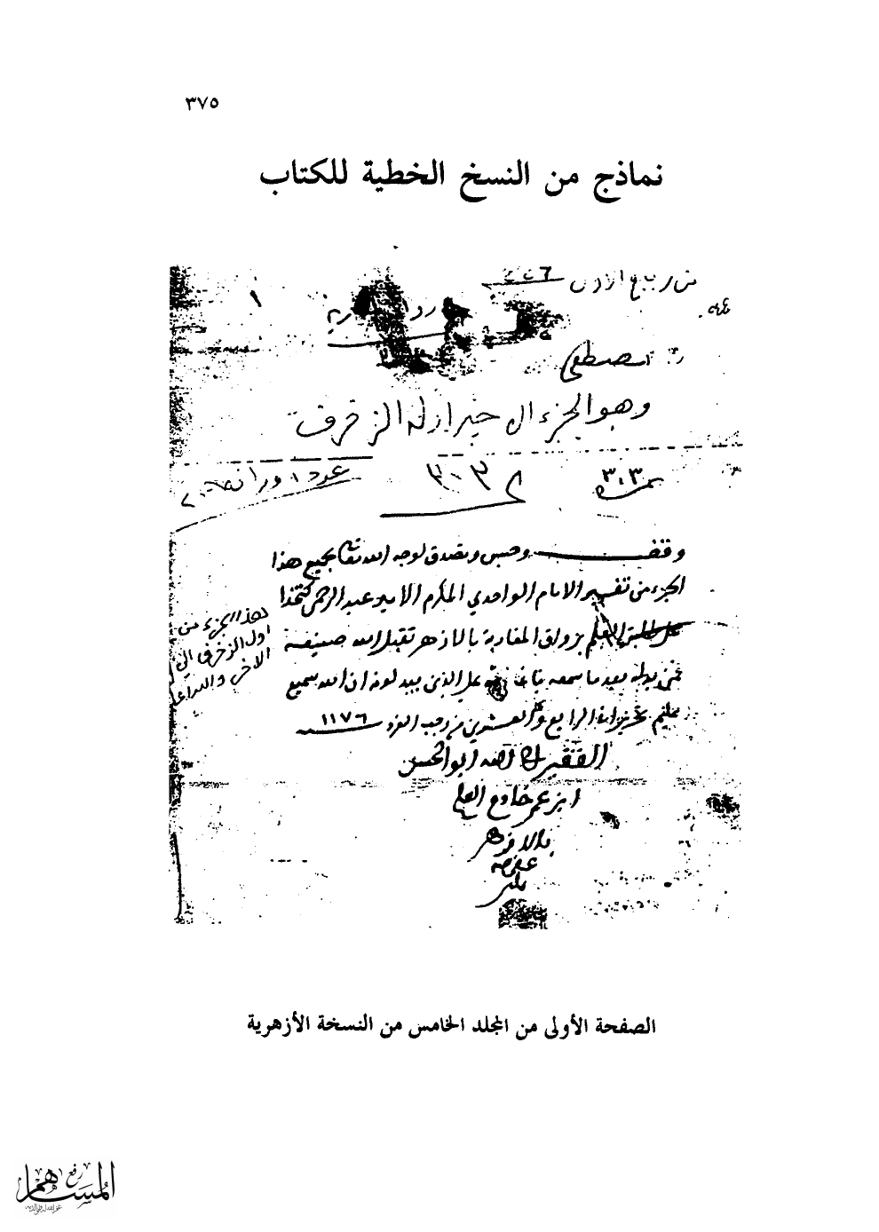 الصفحة الأولى من المجلد الخامس من النسخة الأزهرية