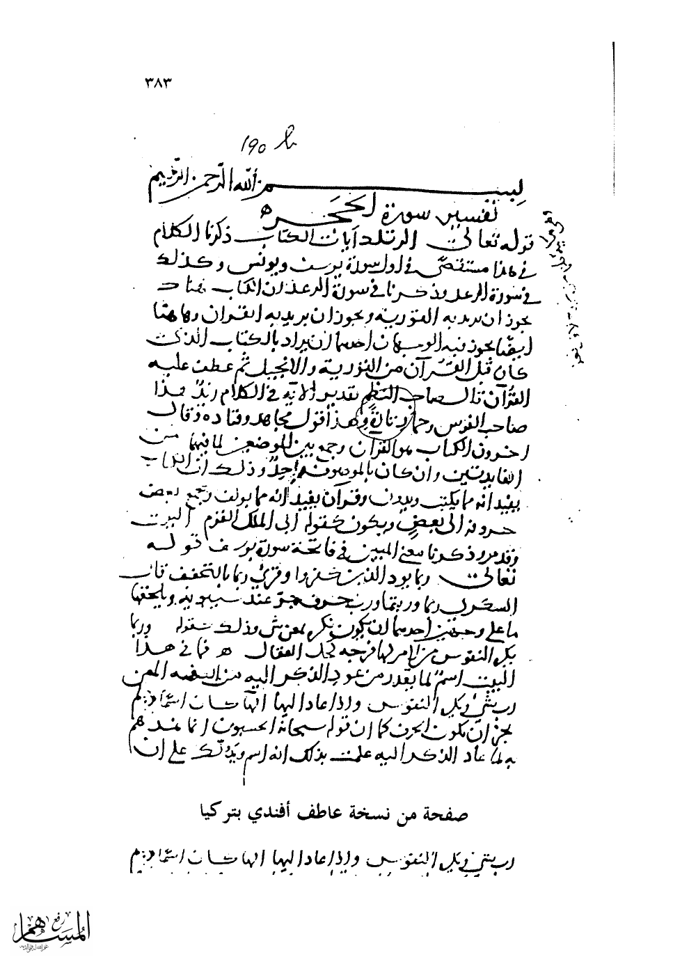 صفحة من نسخة عاطف أفندي بتركيا