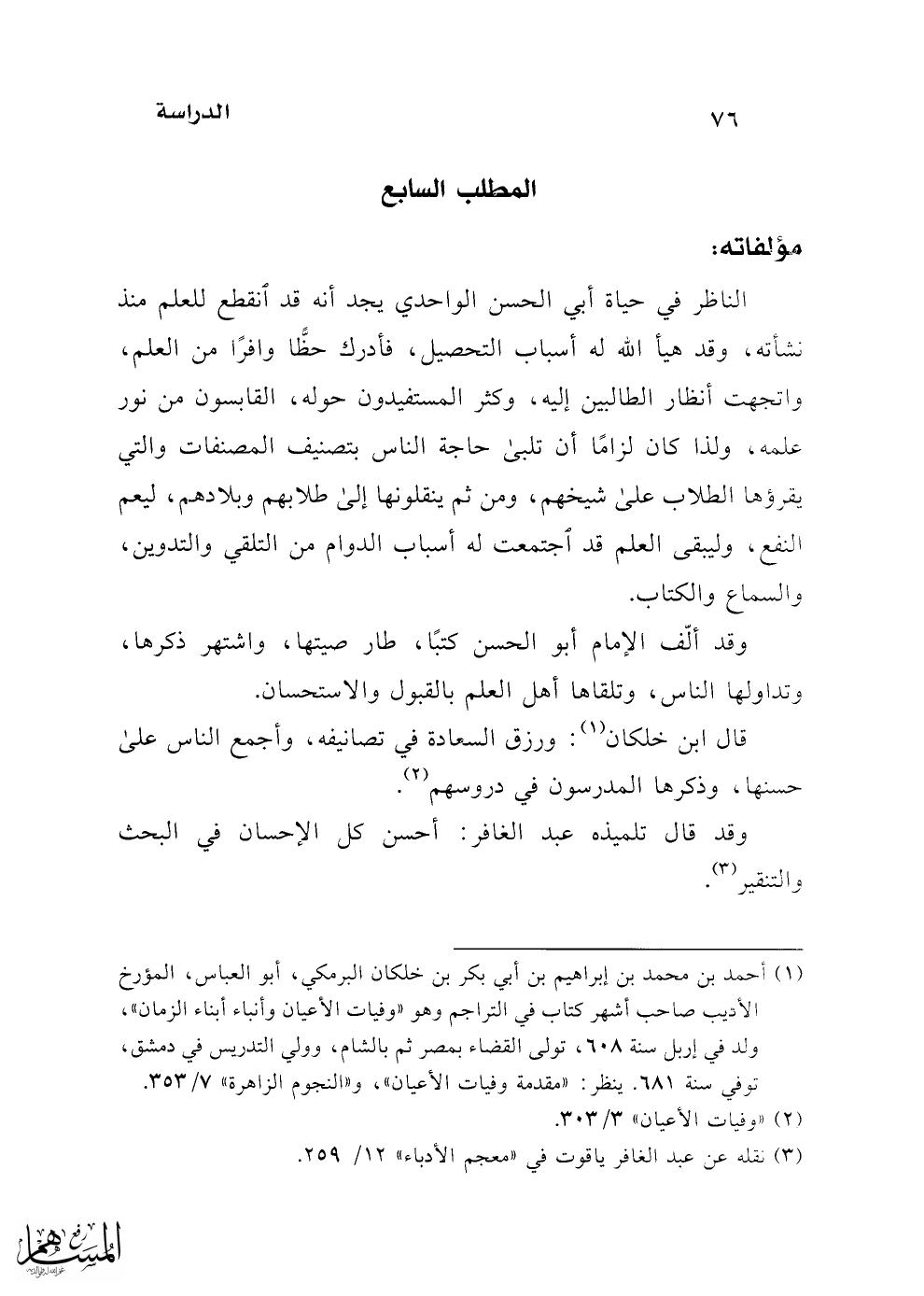 المطلب السابع