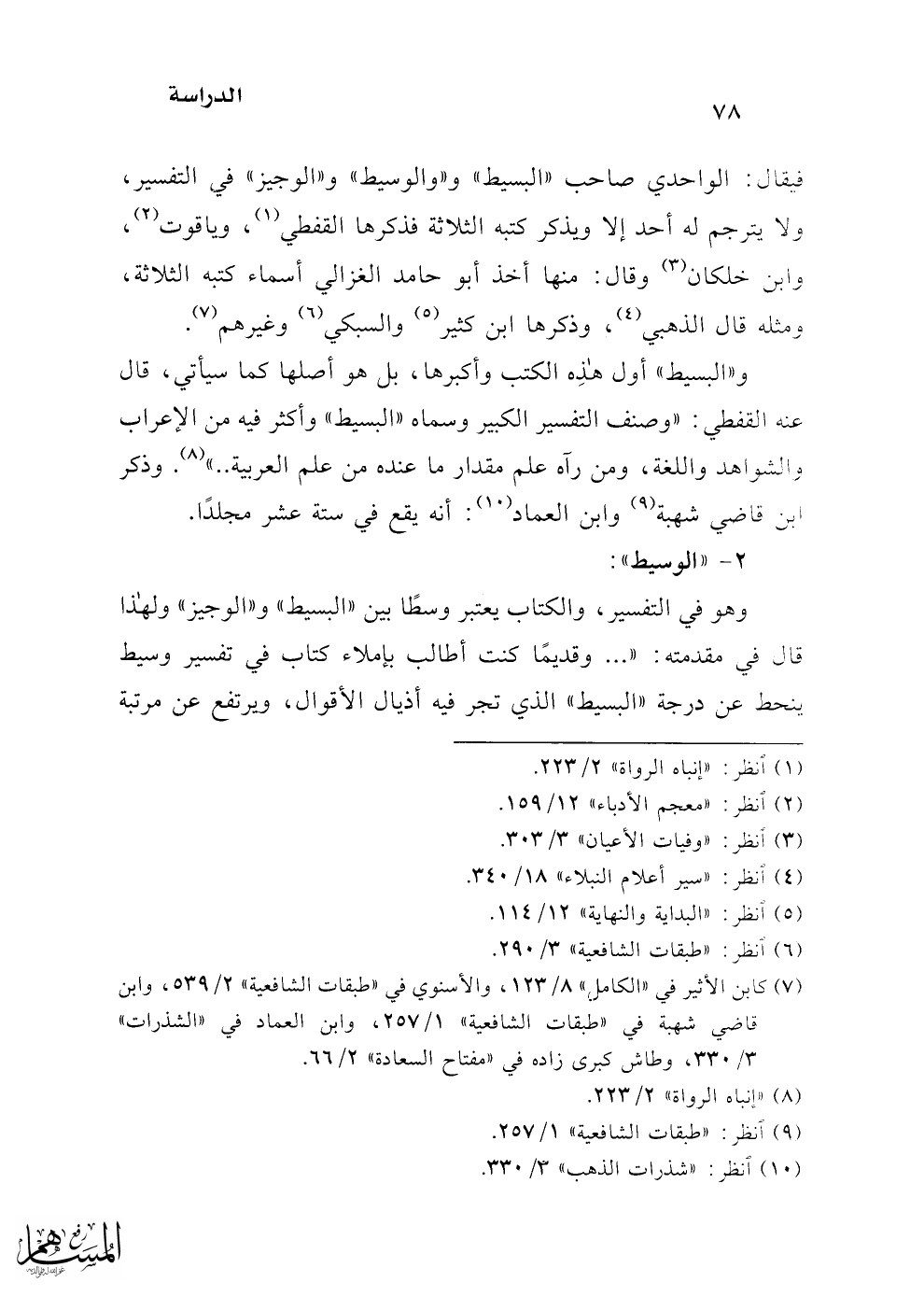 و"البسيط" أول هذه الكتب وأكبرها، بل هو أصلها كما سيأتي، قال عنه القفطي: "وصنف التفسير الكبير وسماه "البسيط" وأكثر فيه من الإعراب والشواهد واللغة، ومن رآه علم مقدار ما عنده من علم العربية .. " (¬8). وذكر ابن قاضي شهبة (¬9) وابن العماد (¬10): أنه يقع في ستة عشر مجلدًا.