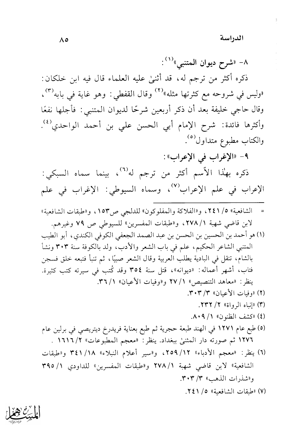 (¬6) ينظر: "معجم الأدباء" 12/ 259، و"سير أعلام النبلاء" 18/ 341 و"طبقات الشافعية" لابن قاضي شهبة 1/ 278 و"طبقات المفسرين" للداودي 1/ 395 و"شذرات الذهب" 3/ 303.