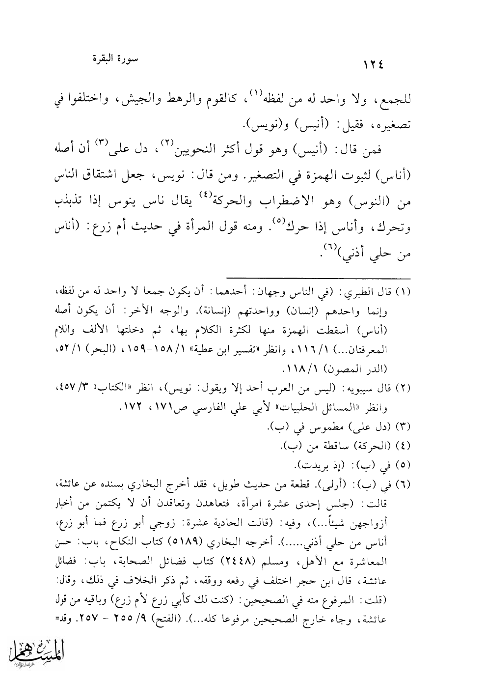 (¬1) قال الطبري: (في الناس وجهان: أحدهما: أن يكون جمعا لا واحد له من لفظه، وإنما واحدهم (إنسان) وواحدتهم (إنسانة). والوجه الأخر: أن يكون أصله (أناس) أسقطت الهمزة منها لكثرة الكلام بها، ثم دخلتها الألف واللام المعرفتان ...) 1/ 116، وانظر "تفسير ابن عطية" 1/ 158 - 159، (البحر) 1/ 52 (الدر المصون) 1/ 118.