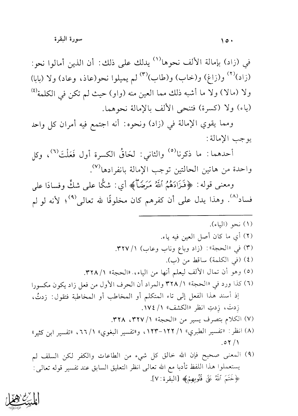 (¬7) الكلام بتصرف يسير من "الحجة" 1/ 327، 328.