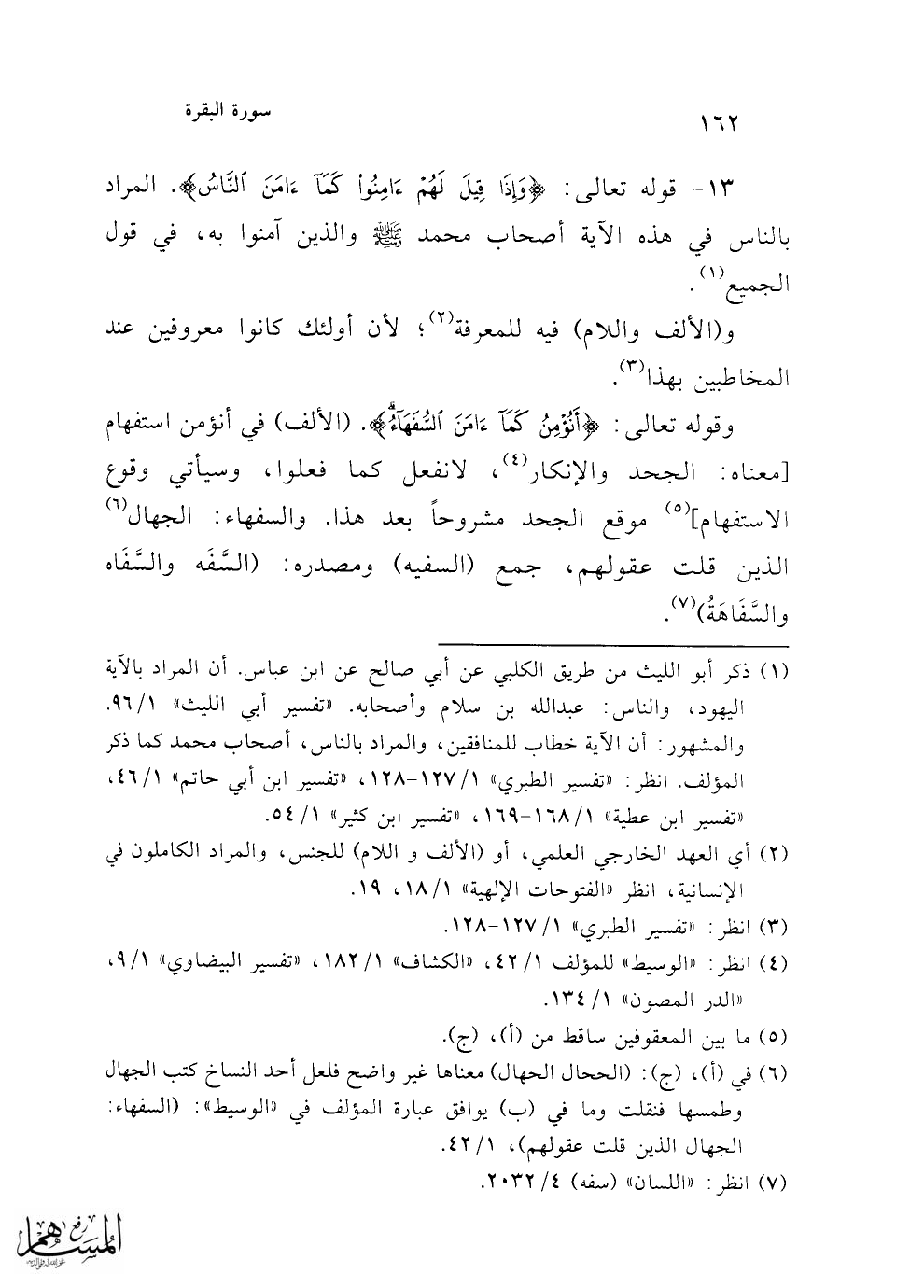 (¬4) انظر: "الوسيط" للمؤلف 1/ 42، "الكشاف" 1/ 182، "تفسير البيضاوي" 1/ 9، "الدر المصون" 1/ 134.