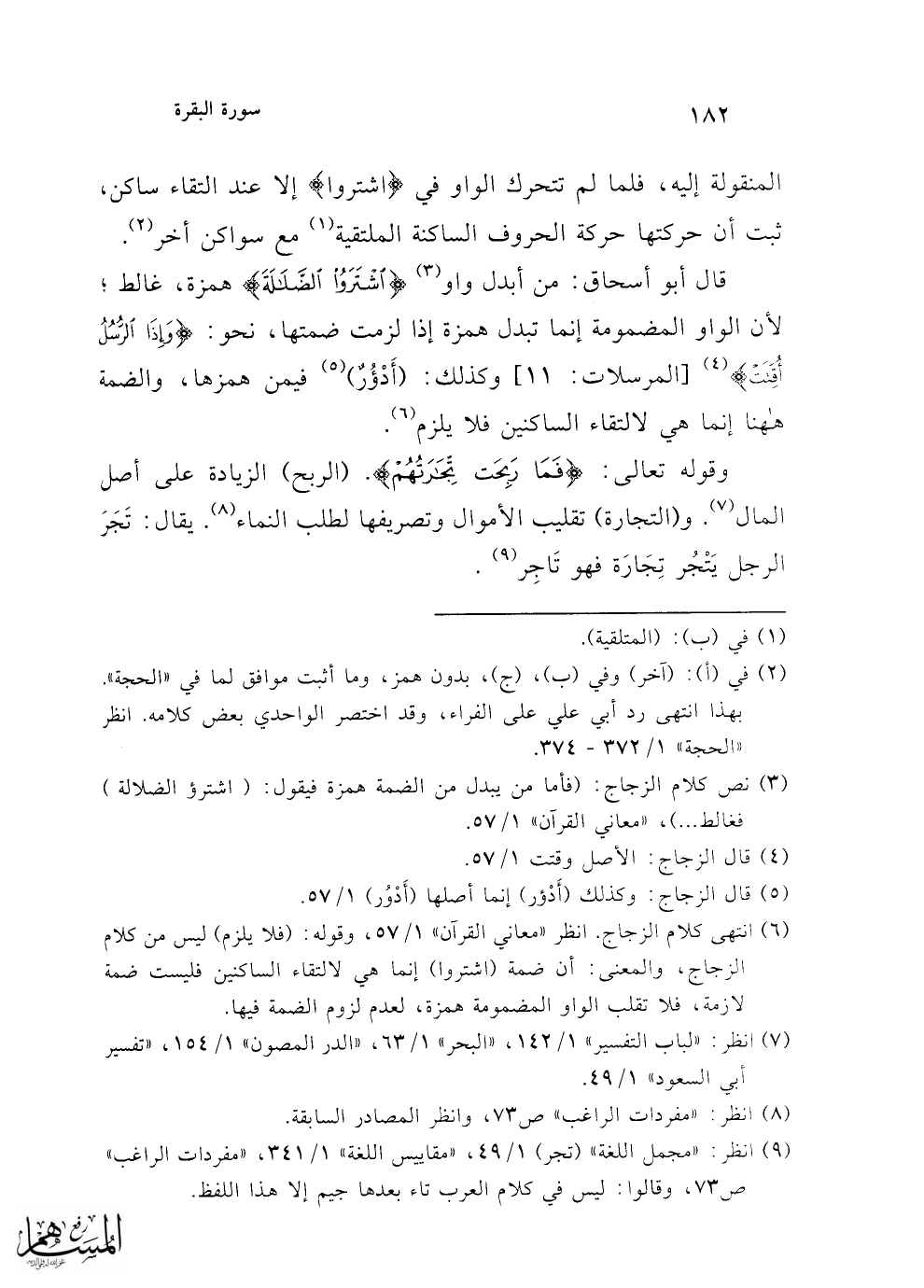 (¬3) نص كلام الزجاج: (فأما من يبدل من الضمة همزة فيقول: (اشترؤ الضلالة) فغالط ...)، "معاني القرآن" 1/ 57.