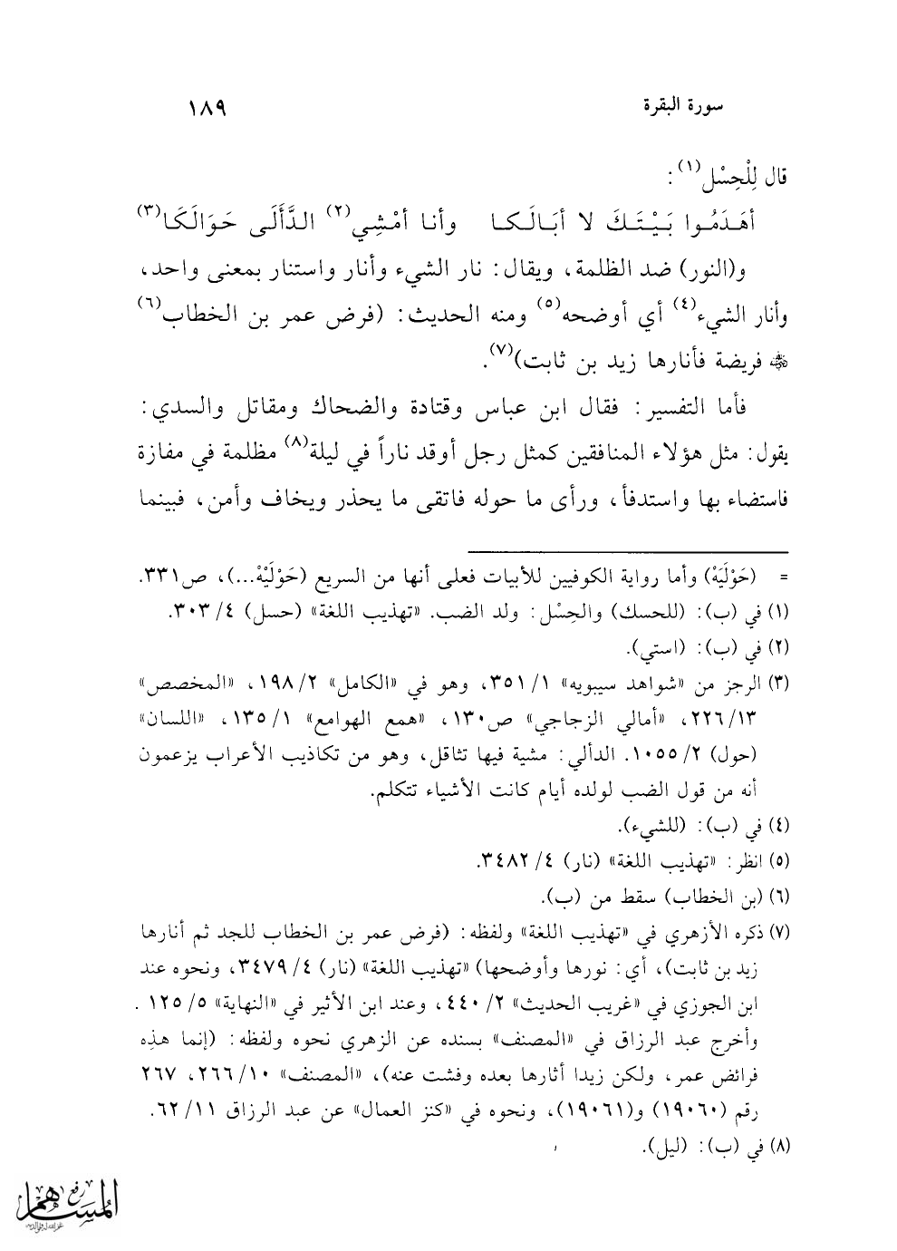 = (حَوْلَيَهْ) وأما رواية الكوفيين للأبيات فعلى أنها من السريع (حَوْلَيْهْ ...)، ص 331.
