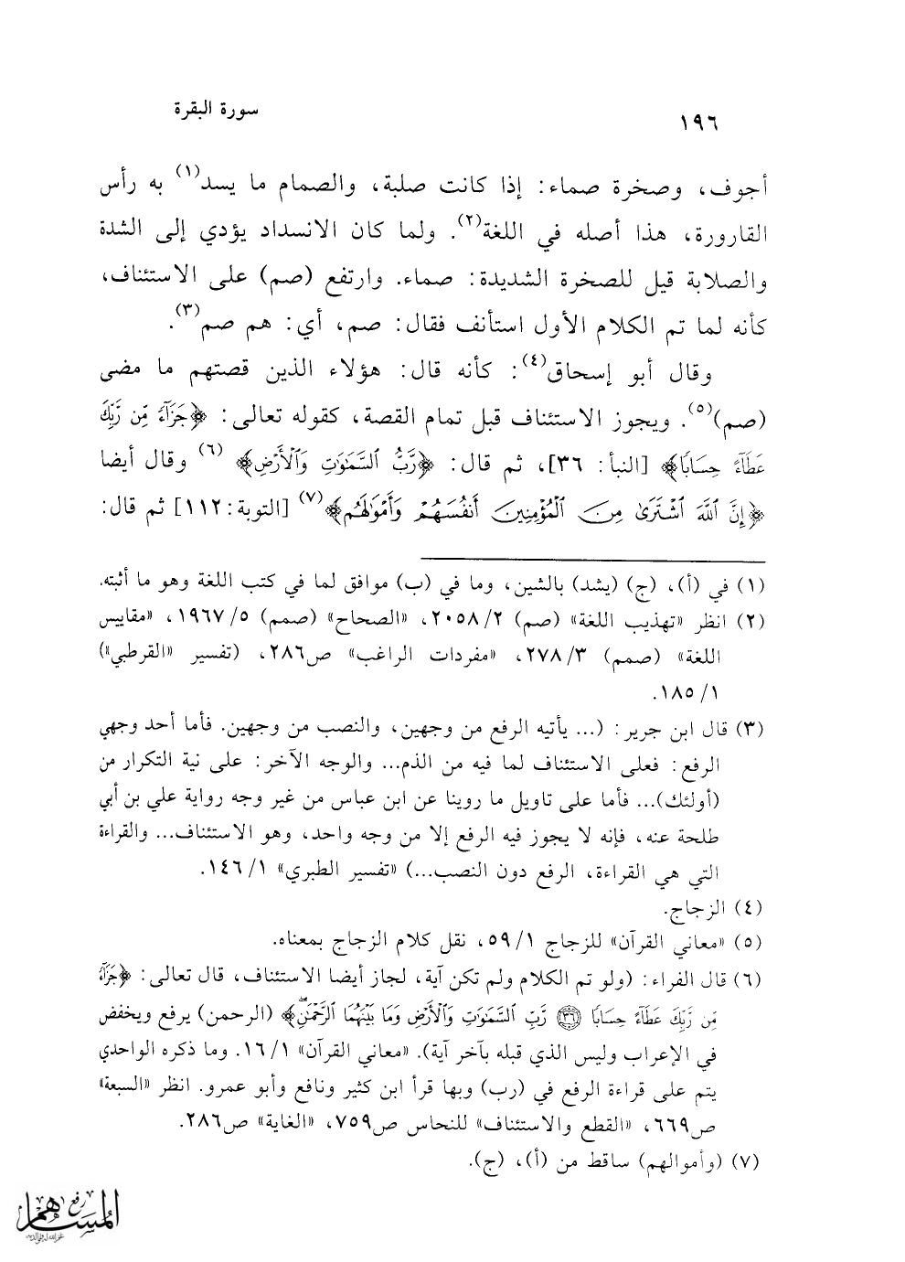 (¬2) انظر "تهذيب اللغة" (صم) 2/ 2058، "الصحاح" (صمم) 5/ 1967، "مقاييس اللغة" (صمم) 3/ 278، "مفردات الراغب" ص 286، (تفسير "القرطبي") 1/ 185.