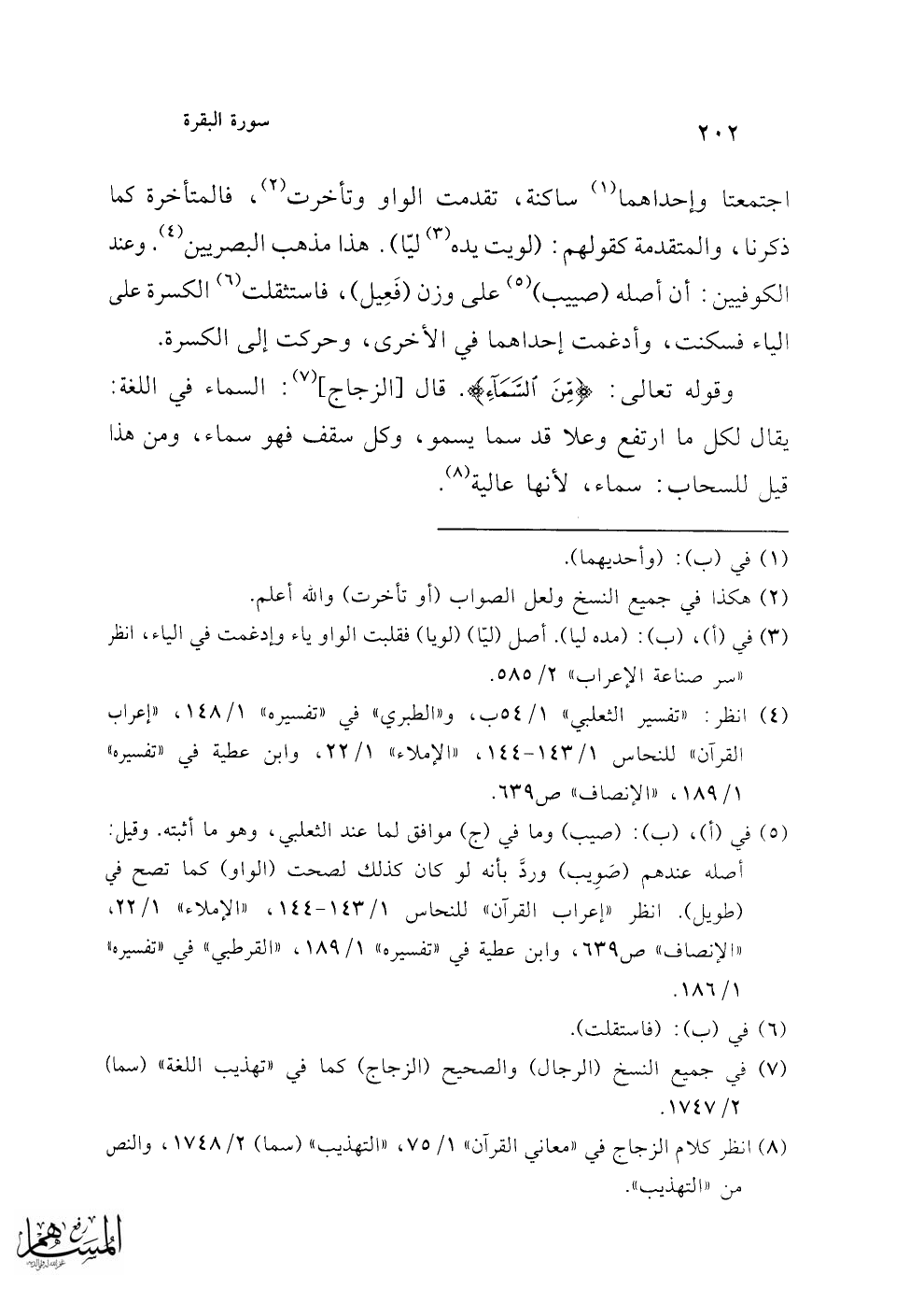 (¬8) انظر كلام الزجاج في "معاني القرآن" 1/ 75، "التهذيب" (سما) 2/ 1748، والنص من "التهذيب".