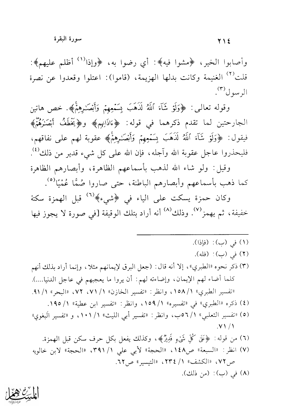 (¬7) انظر: "السبعة" ص 148، "الحجة" لأبي علي 1/ 391، "الحجة" لابن خالويه ص72، "الكشف" 1/ 234، "التيسير" ص 62.