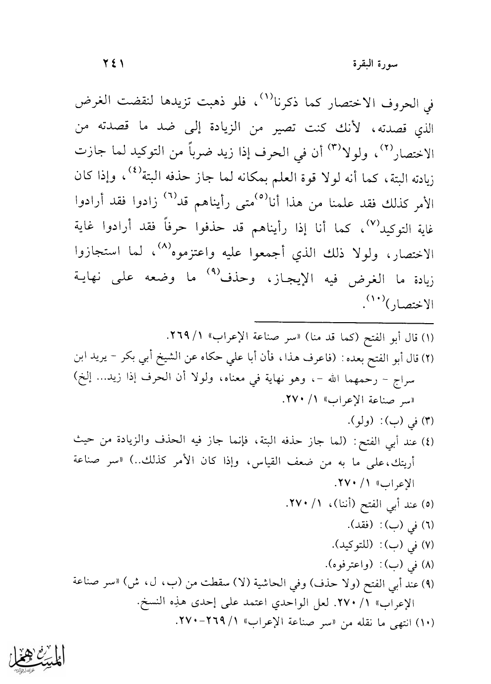 (¬10) انتهى ما نقله من "سر صناعة الإعراب" 1/ 269 - 270.