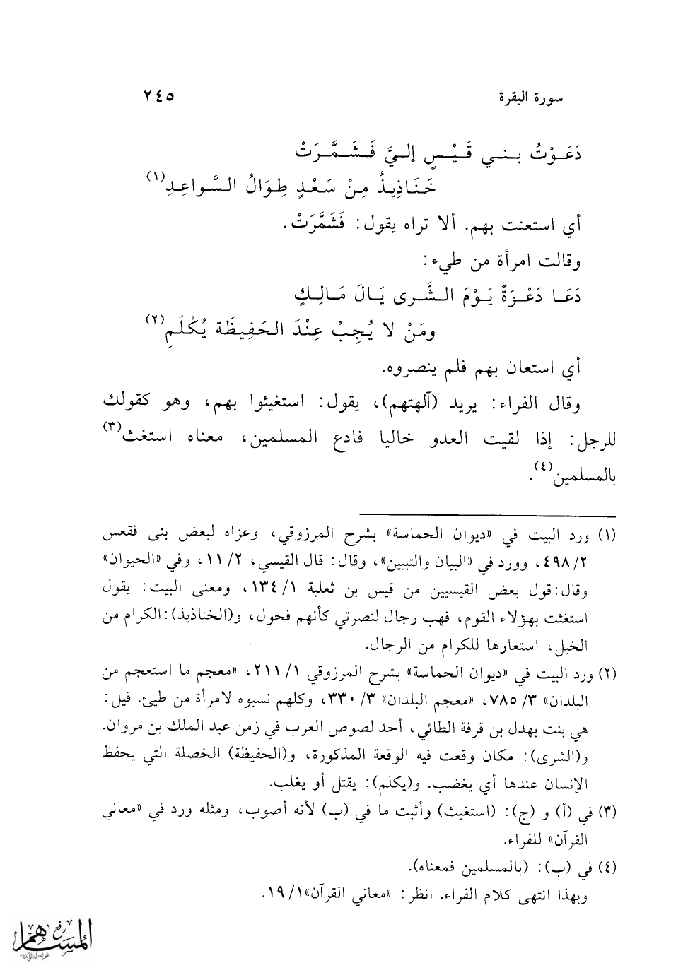 دَعَوْتُ بني قَيْس إليَّ فَشَمَّرَتْ ... خَنَاذِيذُ مِنْ سَعْدٍ طِوَالُ السَّواعِدِ (¬1)