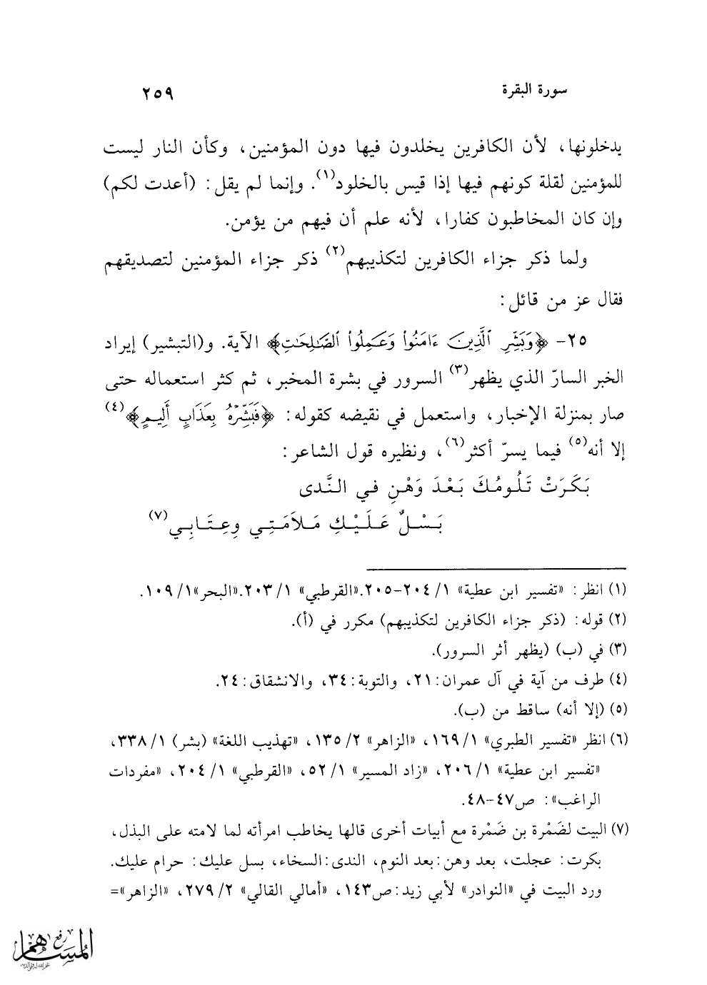 (¬6) انظر "تفسير الطبري" 1/ 169، "الزاهر" 2/ 135، "تهذيب اللغة" (بشر) 1/ 338، "تفسير ابن عطية" 1/ 206، "زاد المسير" 1/ 52، "القرطبي" 1/ 204، "مفردات الراغب": ص 47 - 48.