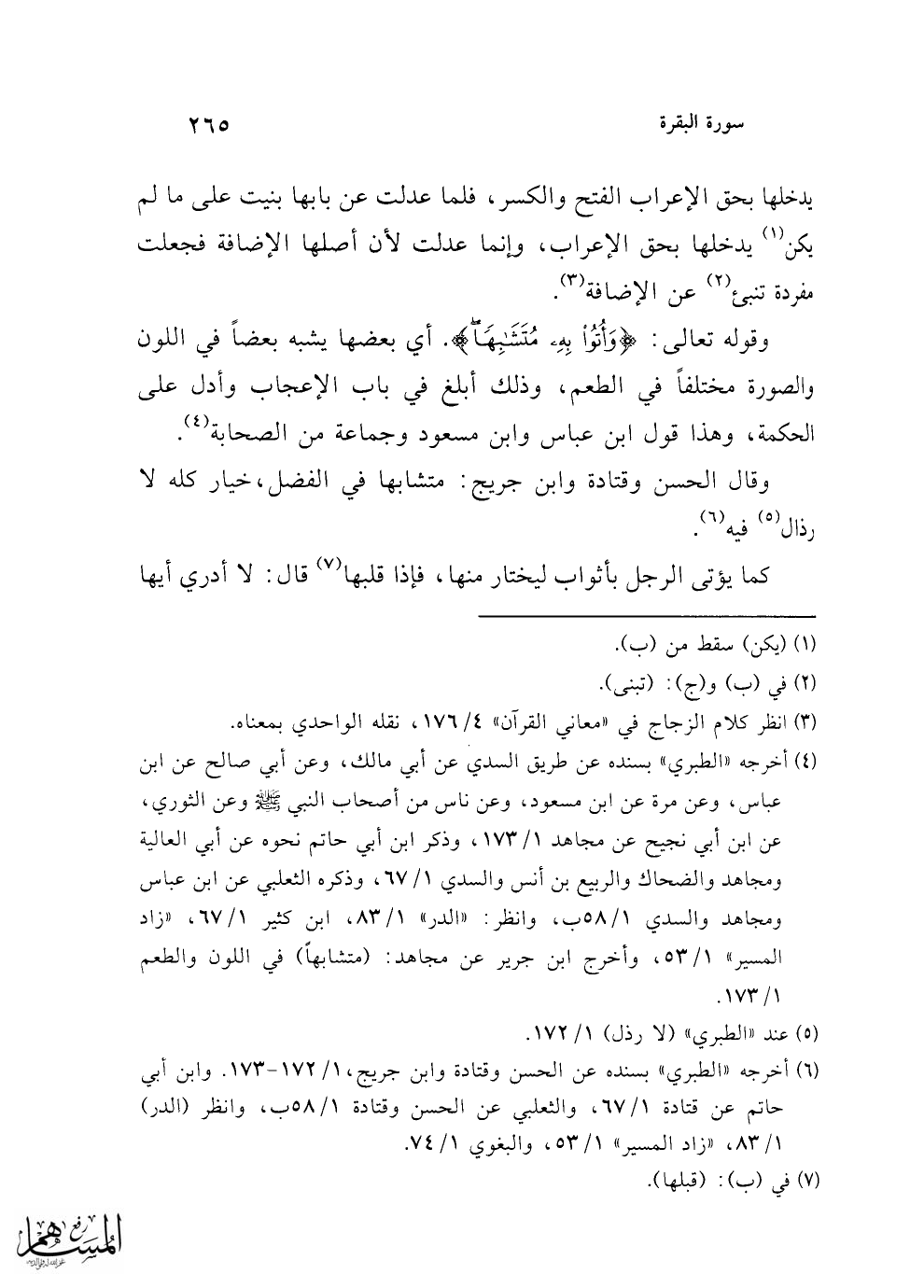 (¬6) أخرجه "الطبري" بسنده عن الحسن وقتادة وابن جريج، 1/ 172 - 173. وابن أبي حاتم عن قتادة 1/ 67، والثعلبي عن الحسن وقتادة 1/ 58 ب، وانظر (الدر) 1/ 83، "زاد المسير" 1/ 53، والبغوي 1/ 74.