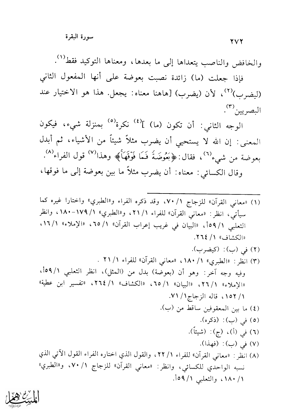 (¬3) انظر: "الطبري" 1/ 180، "معاني القرآن" للفراء 1/ 21.