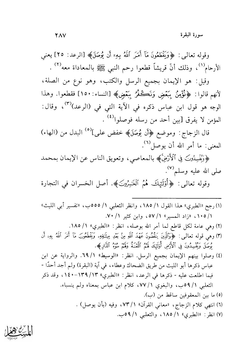 وقوله تعالى: {وَيَقْطَعُونَ مَا أَمَرَ اللَّهُ بِهِ أَنْ يُوصَلَ} [الرعد: 25] يعني الأرحام (¬1)، وذلك أنّ قريشاً قطعوا رحم النبي - صلى الله عليه وسلم - بالمعاداة معه (¬2).