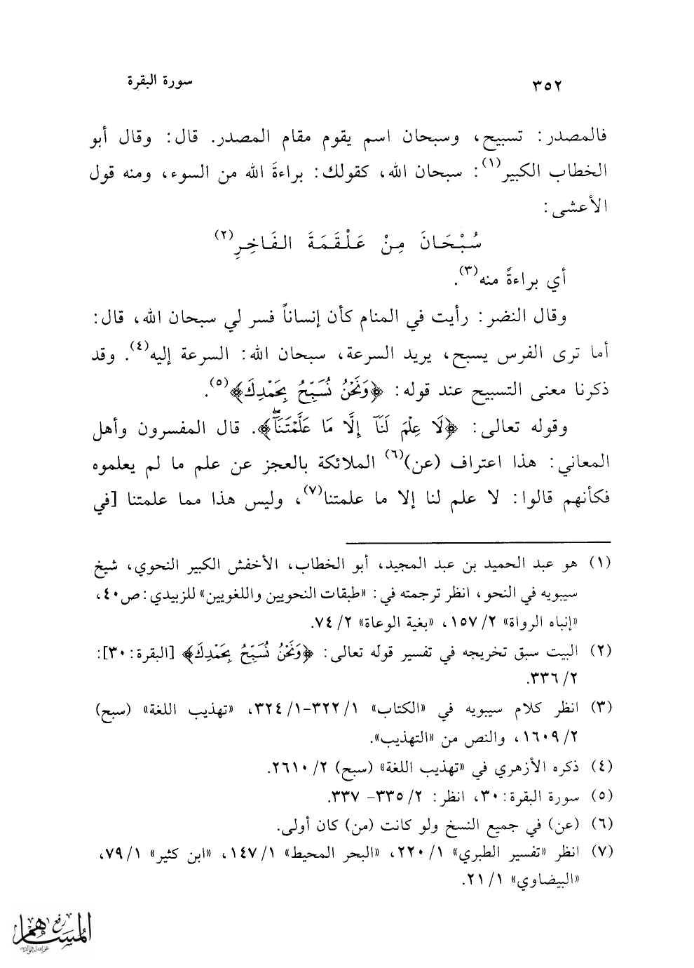 (¬3) انظر كلام سيبويه في "الكتاب" 1/ 322 - 1/ 324، "تهذيب اللغة" (سبح) 2/ 1609، والنص من "التهذيب".