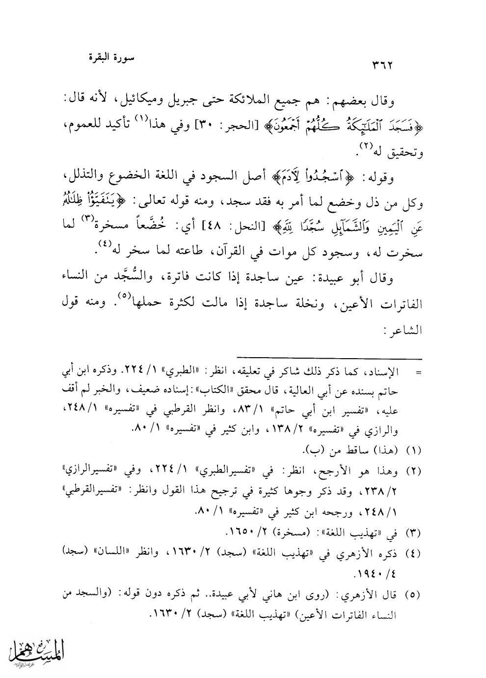 (¬4) ذكره الأزهري في "تهذيب اللغة" (سجد) 2/ 1630، وانظر "اللسان" (سجد) 4/ 1940