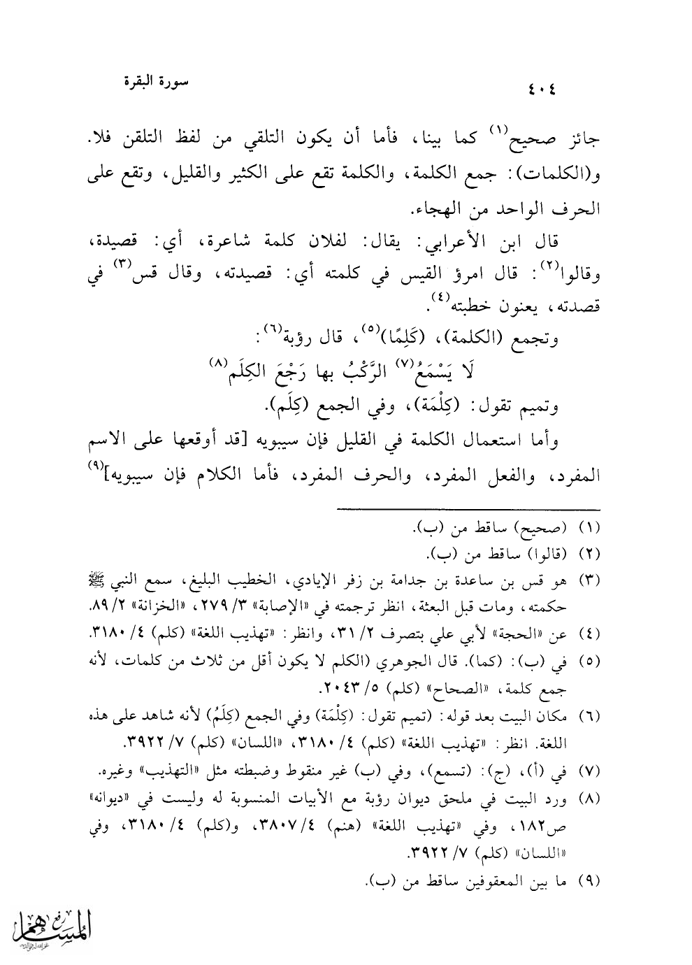 (¬5) في (ب): (كما). قال الجوهري (الكلم لا يكون أقل من ثلاث من كلمات, لأنه جمع كلمة، "الصحاح" (كلم) 5/ 2043.