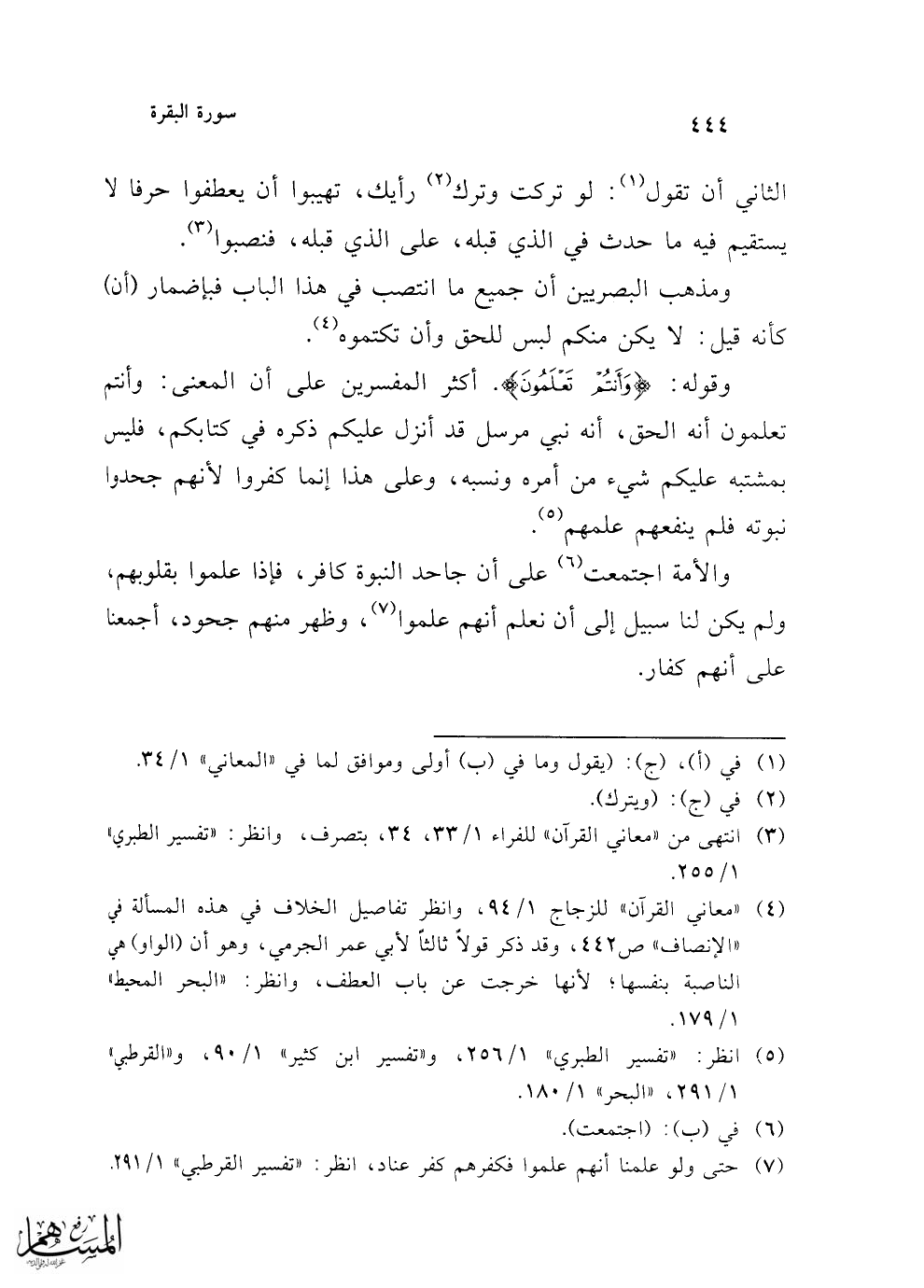 (¬5) انظر: "تفسير الطبري" 1/ 256، و"تفسير ابن كثير" 1/ 90، و"القرطبي" 1/ 291، "البحر" 1/ 180.