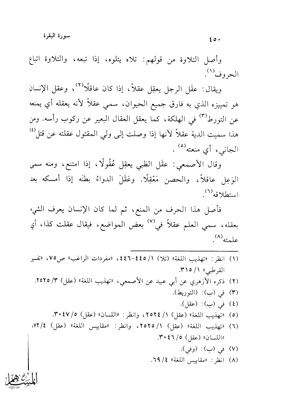 (¬5) "تهذيب اللغة" (عقل) 1/ 2524، وانظر: "اللسان" (عقل) 5/ 3047.