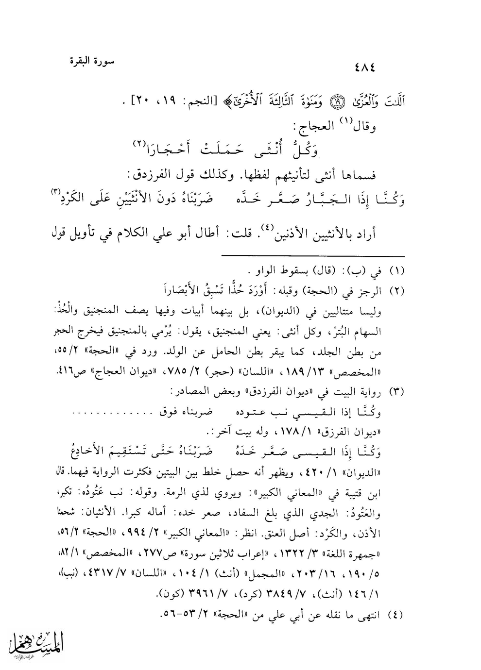 (¬4) انتهى ما نقله عن أبي علي من "الحجة" 2/ 53 - 56.