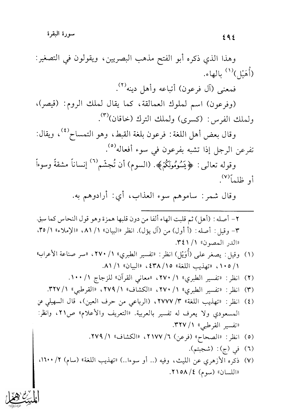 (¬5) انظر: "الصحاح" (فرعن) 6/ 2177، "الكشاف" 1/ 279.