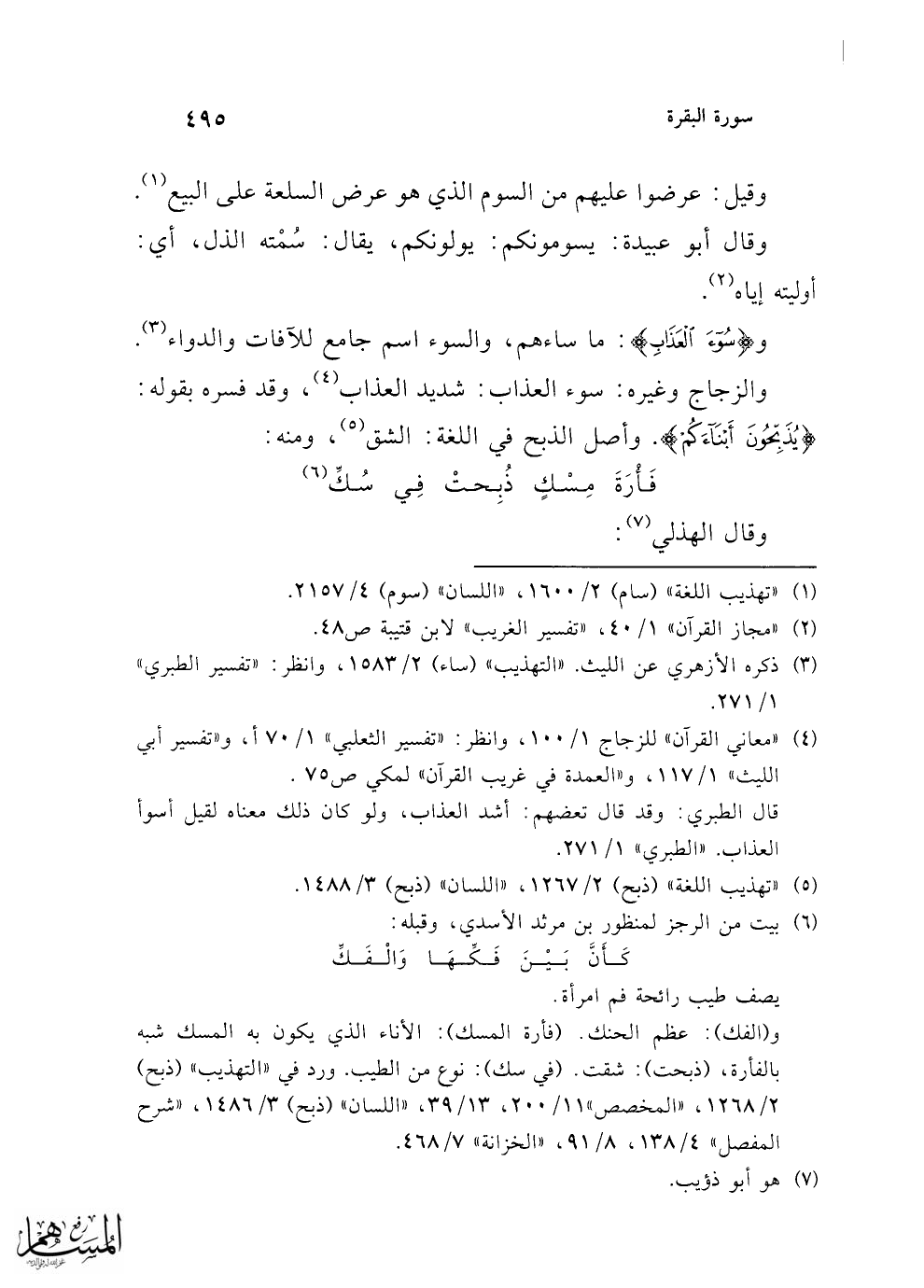 (¬5) "تهذيب اللغة" (ذبح) 2/ 1267، "اللسان" (ذبح) 3/ 1488.