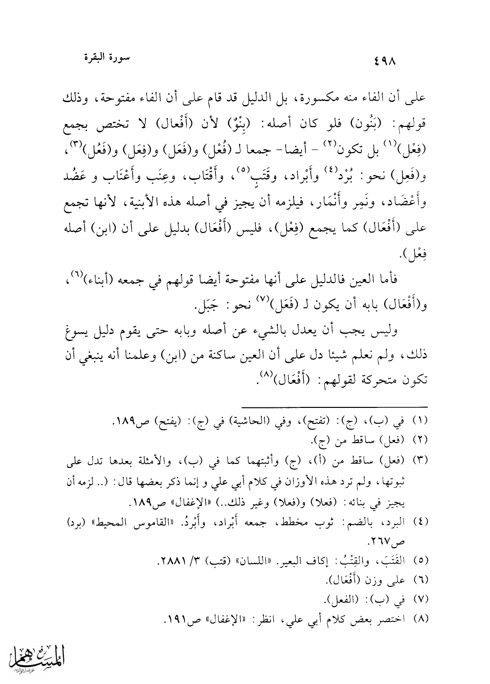 (¬8) اختصر بعض كلام أبي علي، انظر: "الإغفال" ص 191.