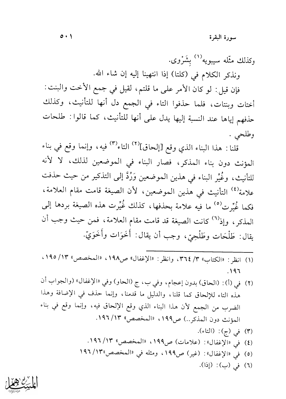 (¬1) انظر: "الكتاب" 3/ 364، وانظر: "الإغفال" ص 198، "المخصص" 13/ 195، 196.