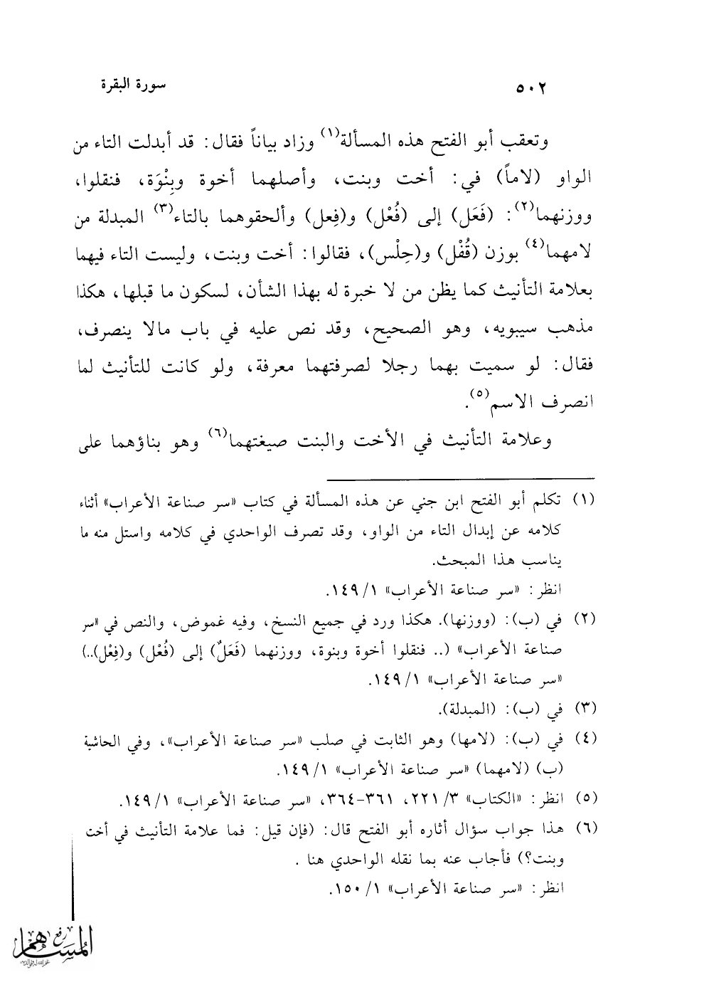 (¬5) انظر: "الكتاب" 3/ 221، 361 - 364، "سر صناعة الأعراب" 1/ 149.