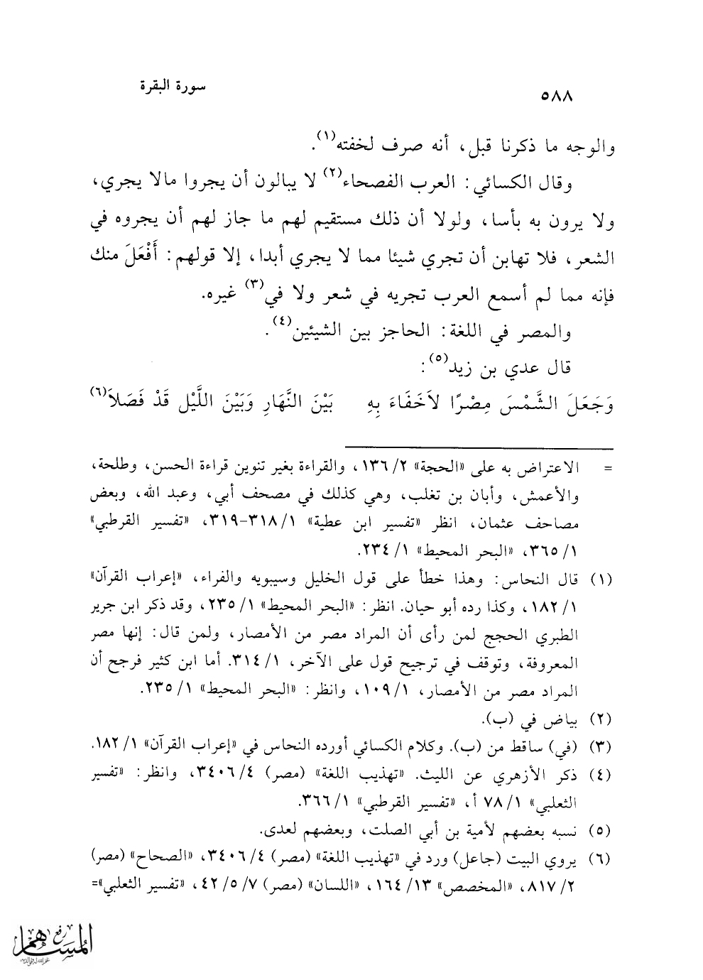 وَجَعَلَ الشَمْسَ مِصْرًا لاَخَفَاءَ بِهِ ... بَيْنَ النَّهَارِ وَبَيْنَ اللَّيْل قَدْ فَصَلاَ (¬6)