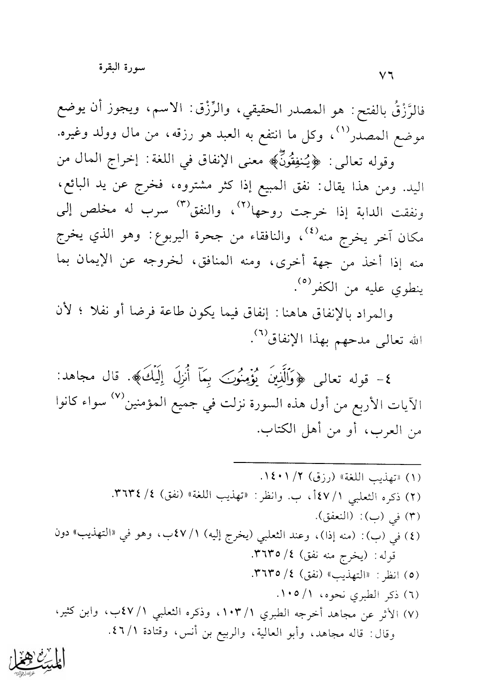 (¬2) ذكره الثعلبي 1/ 47 أ، ب. وانظر. "تهذيب اللغة" (نفق) 4/ 3634.