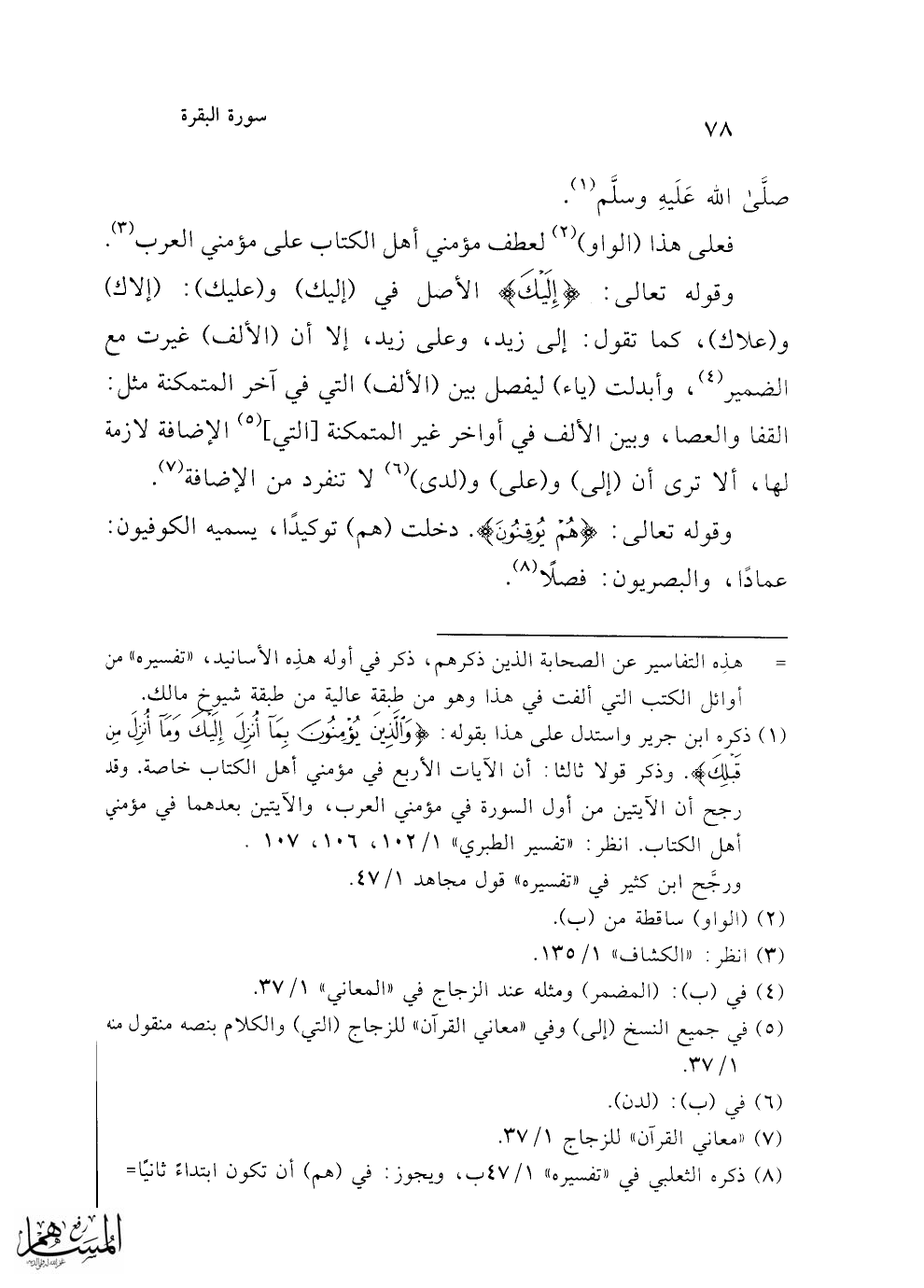 فعلى هذا (الواو) (¬2) لعطف مؤمني أهل الكتاب على مؤمني العرب (¬3).