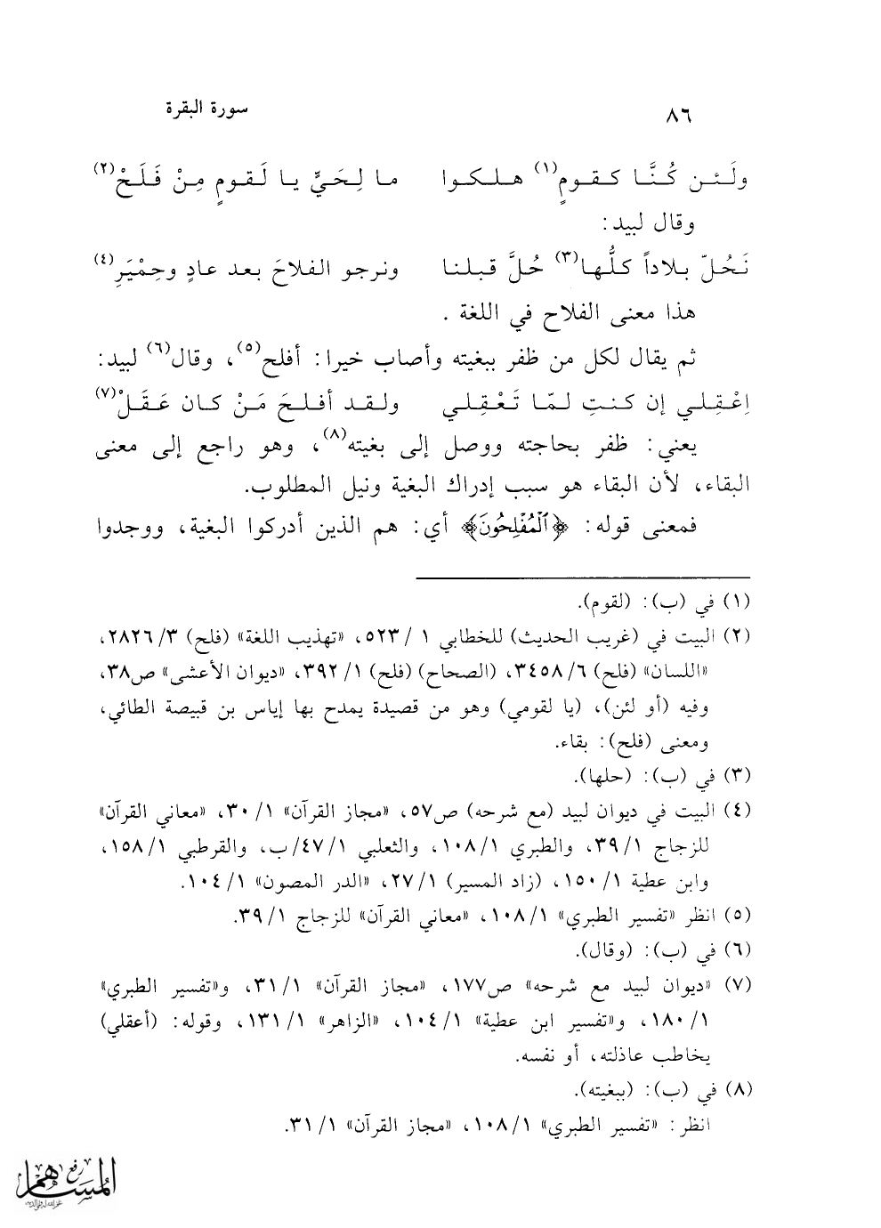(¬4) البيت في ديوان لبيد (مع شرحه) ص 57، "مجاز القرآن" 1/ 30، "معاني القرآن" للزجاج 1/ 39، والطبري 1/ 108، والثعلبي 1/ 47/ب، والقرطبي 1/ 158، وابن عطية 1/ 150، (زاد المسير) 1/ 27، "الدر المصون" 1/ 104.