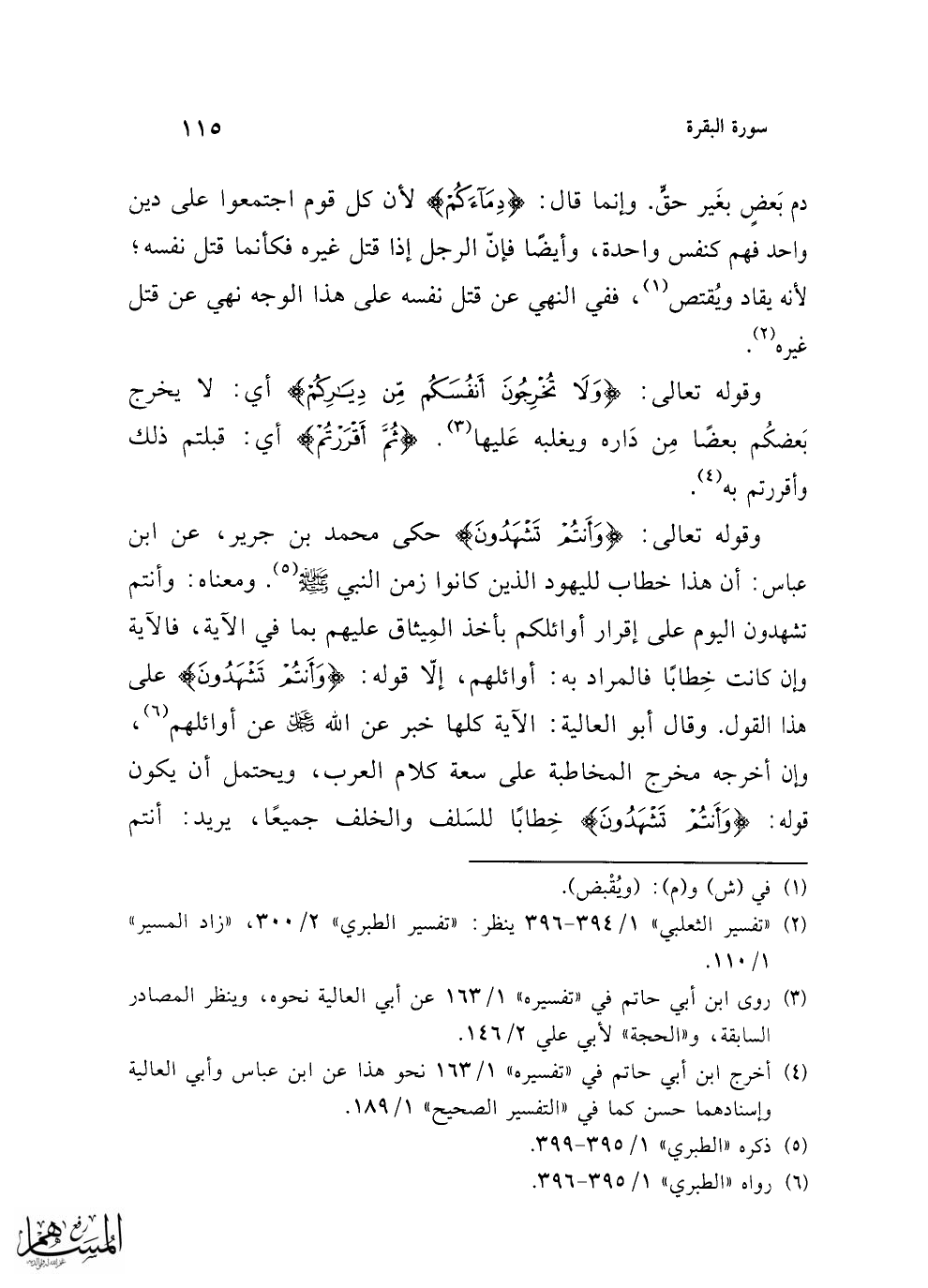 (¬4) أخرج ابن أبي حاتم في "تفسيره" 1/ 163 نحو هذا عن ابن عباس وأبي العالية وإسنادهما حسن كما في "التفسير الصحيح" 1/ 189.