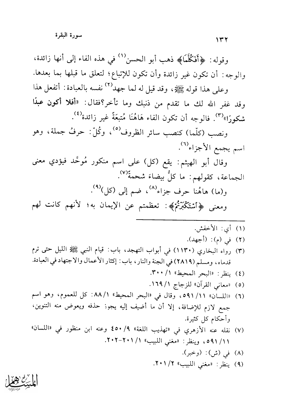 (¬9) ينظر: "مغني اللبيب" 2/ 201.