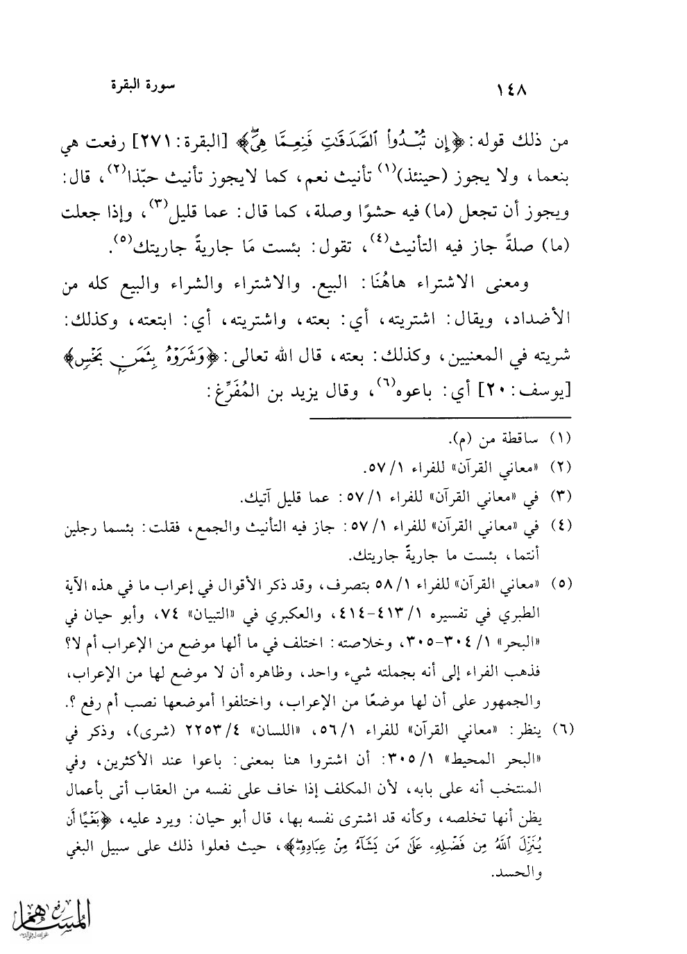 (¬2) "معاني القرآن" للفراء 1/ 57.