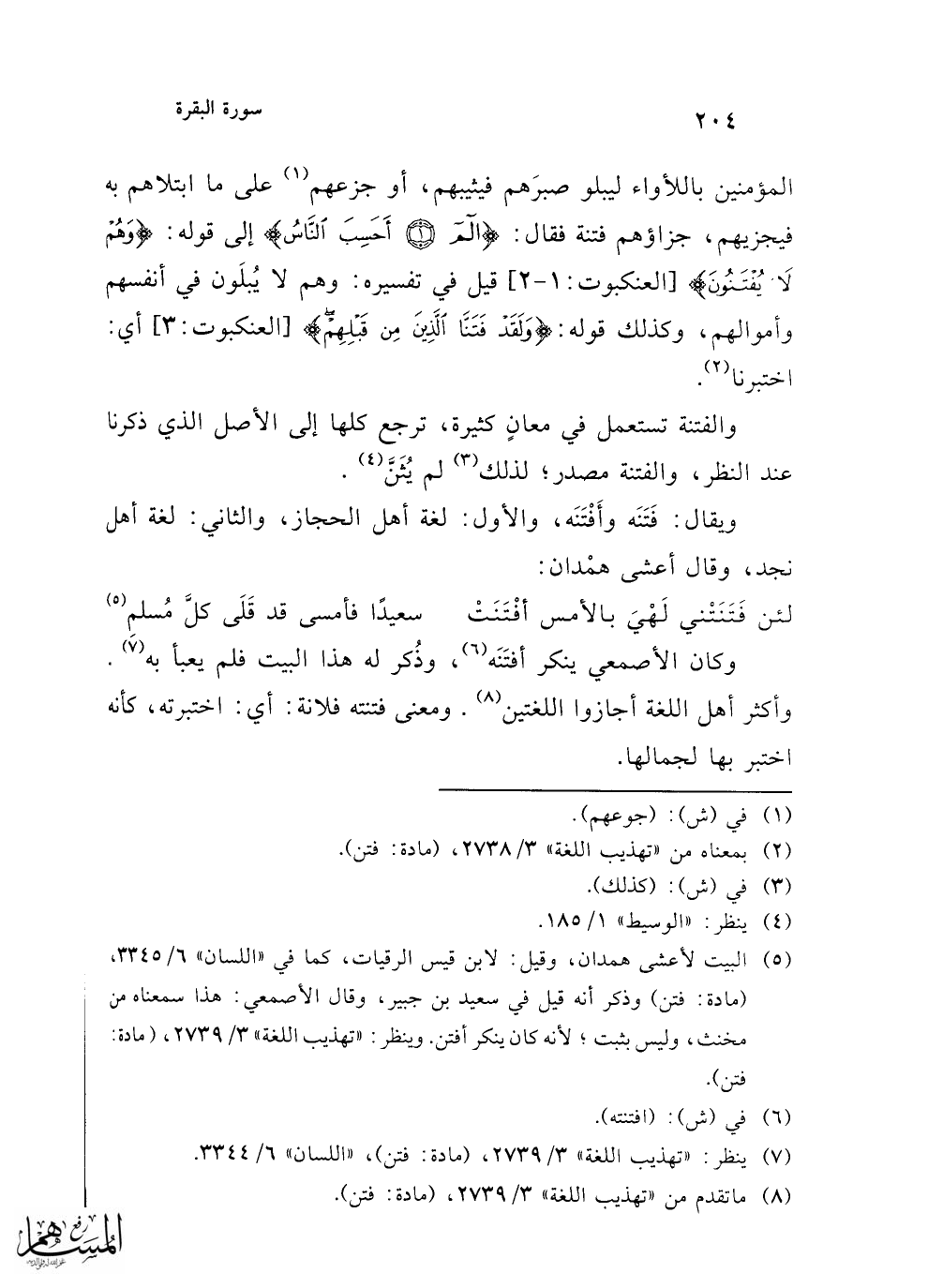 (¬8) ما تقدم من "تهذيب اللغة" 3/ 2739، (مادة: فتن).