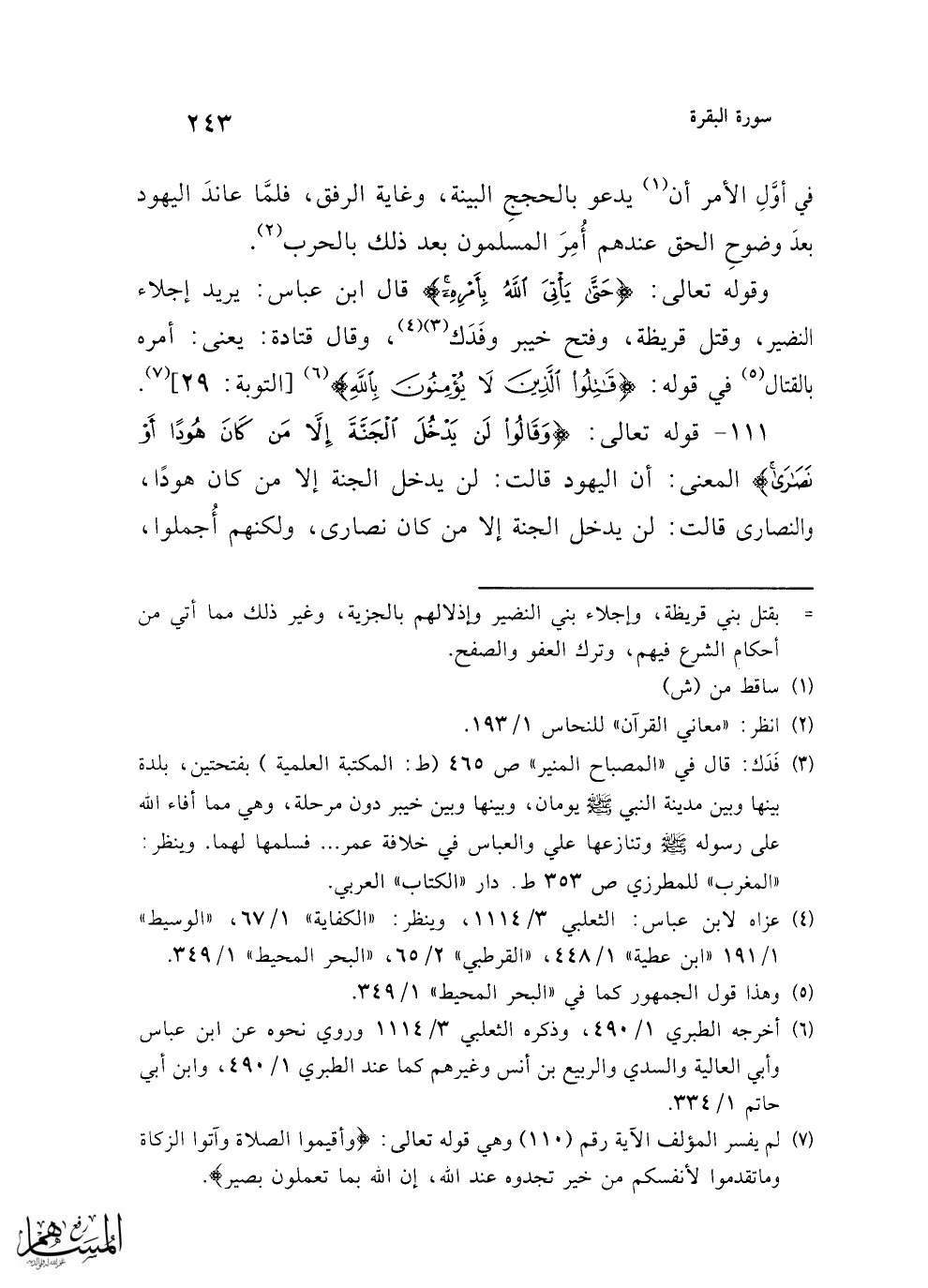 (¬7) لم يفسر المؤلف الآية رقم (110) وهي قوله تعالى: {وَأَقِيمُوا الصَّلَاةَ وَآتُوا الزَّكَاةَ وَمَا تُقَدِّمُوا لِأَنْفُسِكُمْ مِنْ خَيْرٍ تَجِدُوهُ عِنْدَ اللَّهِ إِنَّ اللَّهَ بِمَا تَعْمَلُونَ بَصِيرٌ}.