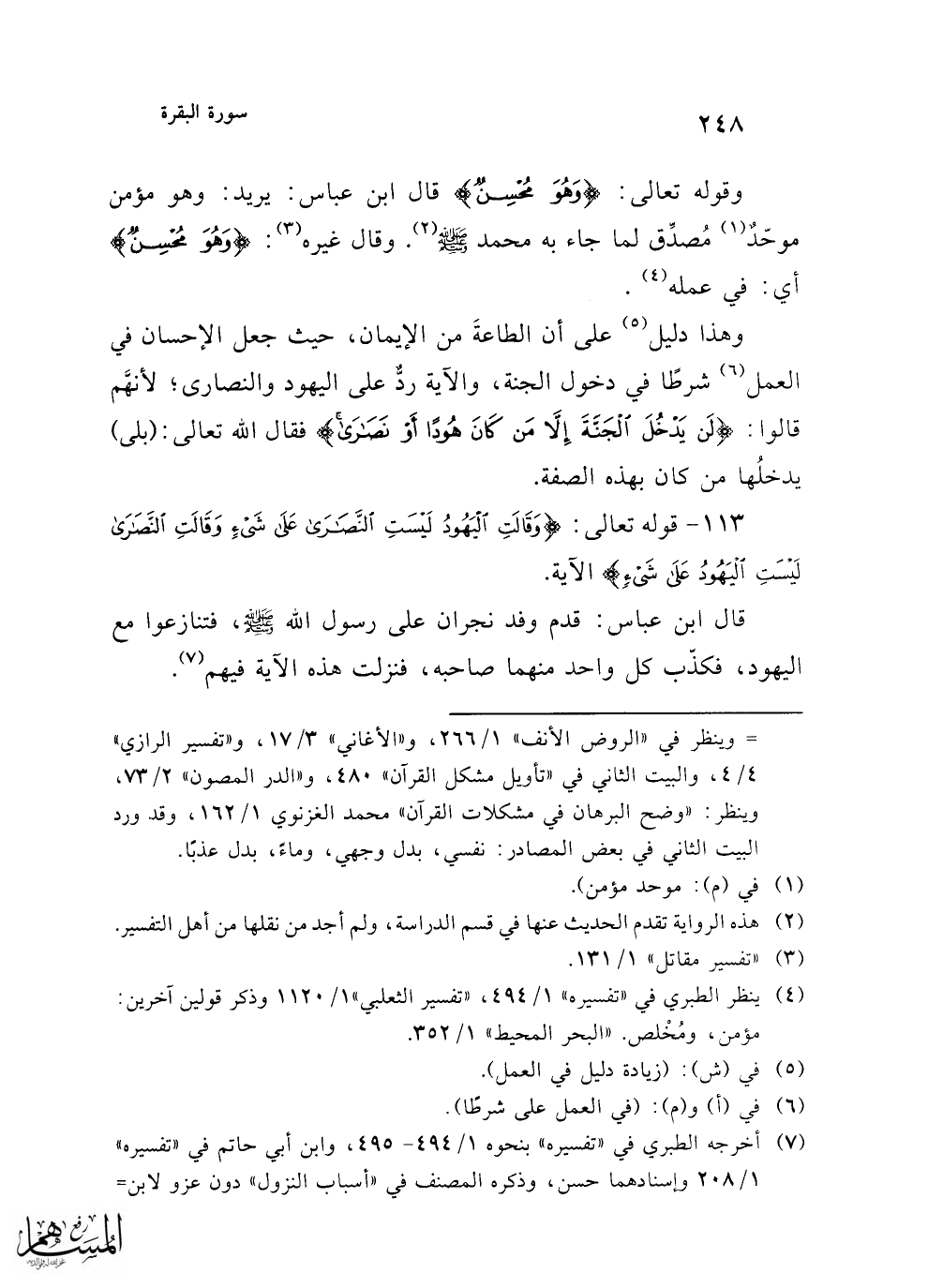 وهذا دليل (¬5) على أن الطاعةَ من الإيمان، حيث جعل الإحسان في العمل (¬6) شرطًا في دخول الجنة، والآية ردٌّ على اليهود والنصارى؛ لأنَّهم قالوا: {لَنْ يَدْخُلَ الْجَنَّةَ إِلَّا مَنْ كَانَ هُودًا أَوْ نَصَارَى} فقال الله تعالى: (بلى) يدخلُها من كان بهذه الصفة.