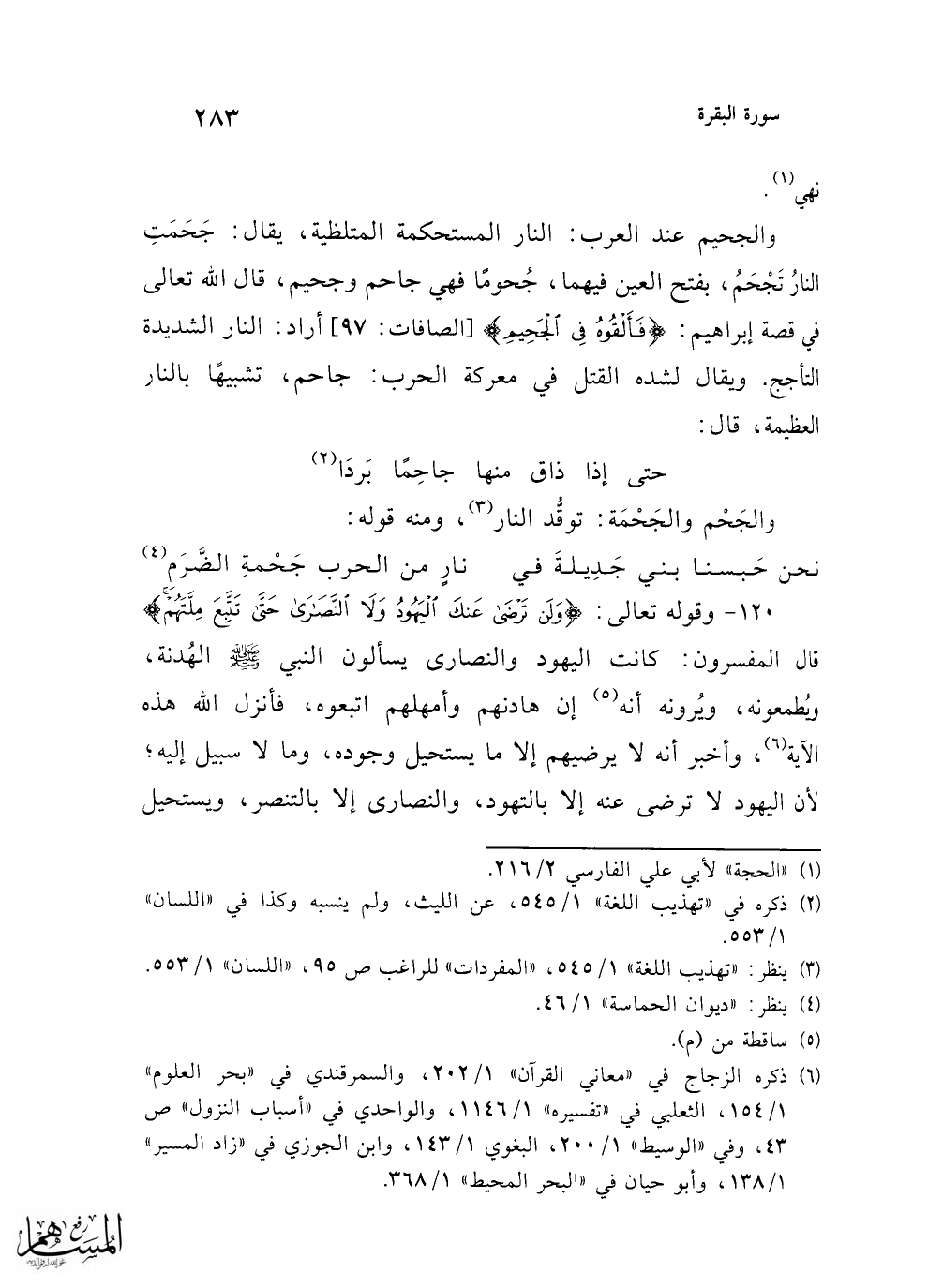 120 - وقوله تعالى: {وَلَنْ تَرْضَى عَنْكَ الْيَهُودُ وَلَا النَّصَارَى حَتَّى تَتَّبِعَ مِلَّتَهُمْ} قال المفسرون: كانت اليهود والنصارى يسألون النبي - صلى الله عليه وسلم - الهُدنة، وُيطمعونه، ويُرونه أنه (¬5) إن هادنهم وأمهلهم اتبعوه، فأنزل الله هذه الآية (¬6)، وأخبر أنه لا يرضيهم إلا ما يستحيل وجوده، وما لا سبيل إليه؛ لأن اليهود لا ترضى عنه إلا بالتهود، والنصارى إلا بالتنصر، ويستحيل