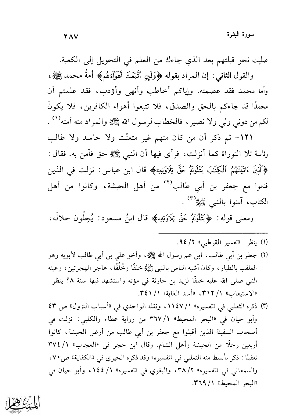 (¬1) ينظر: "تفسير القرطبي" 2/ 94.