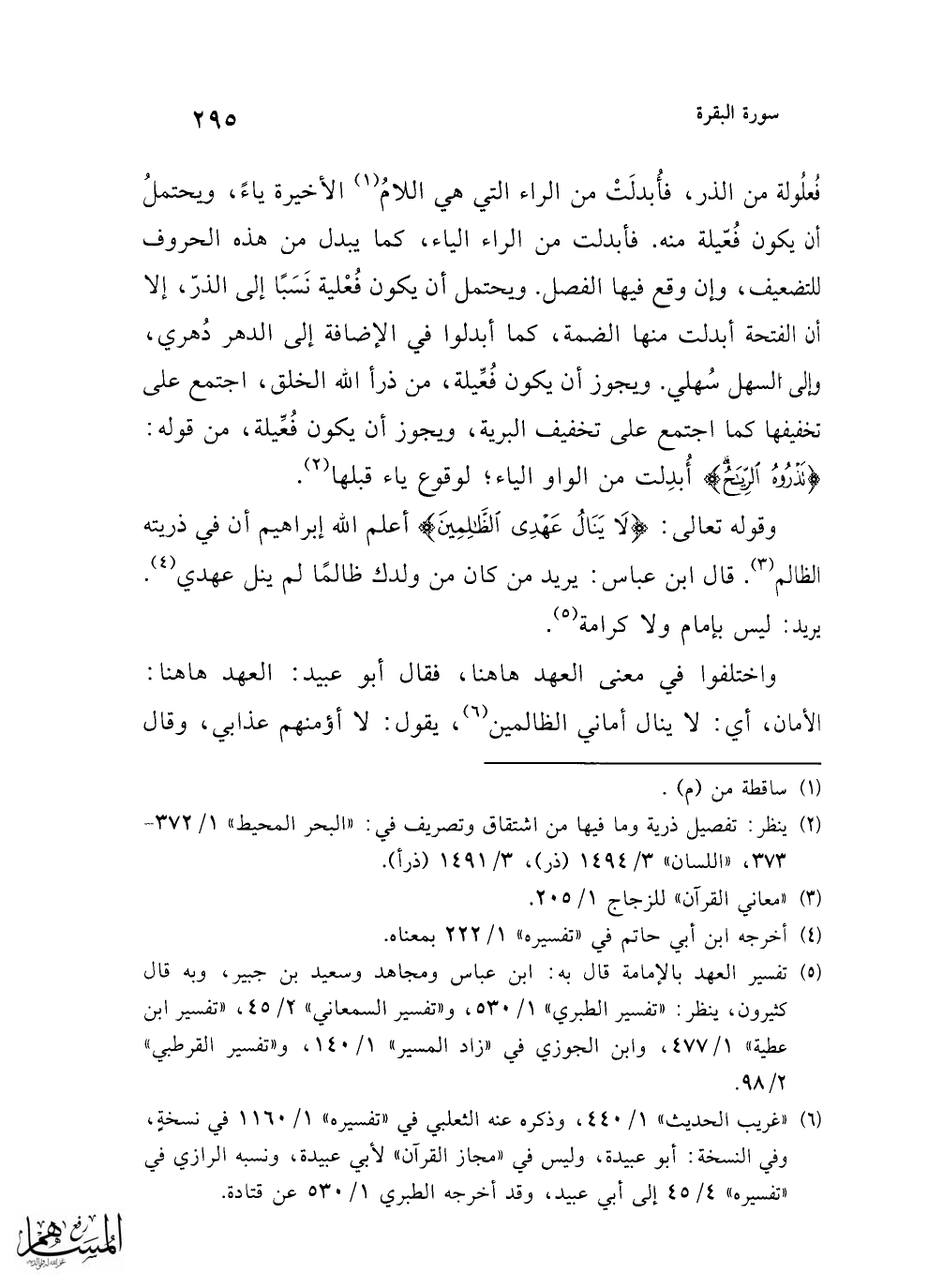 (¬2) ينظر: تفصيل ذرية وما فيها من اشتقاق وتصريف في: "البحر المحيط" 1/ 372 - 373, "اللسان" 3/ 1494 (ذر) , 3/ 1491 (ذرأ).