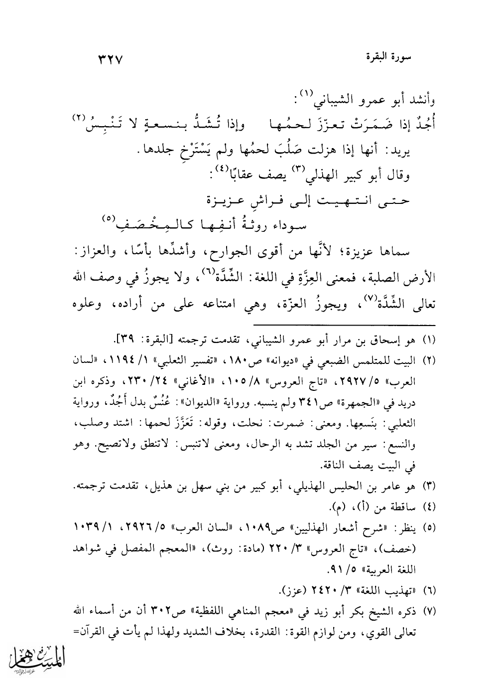 (¬5) ينظر: "شرح أشعار الهذليين" ص1089، "لسان العرب" 5/ 2926، 1/ 1039 (خصف)، "تاج العروس" 3/ 220 (مادة: روث)، "المعجم المفصل في شواهد اللغة العربية" 5/ 91.