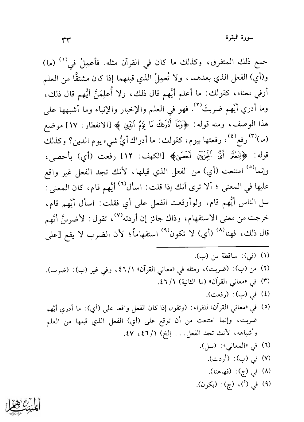 (¬3) في "معاني القرآن" (ما الثانية) 1/ 46.