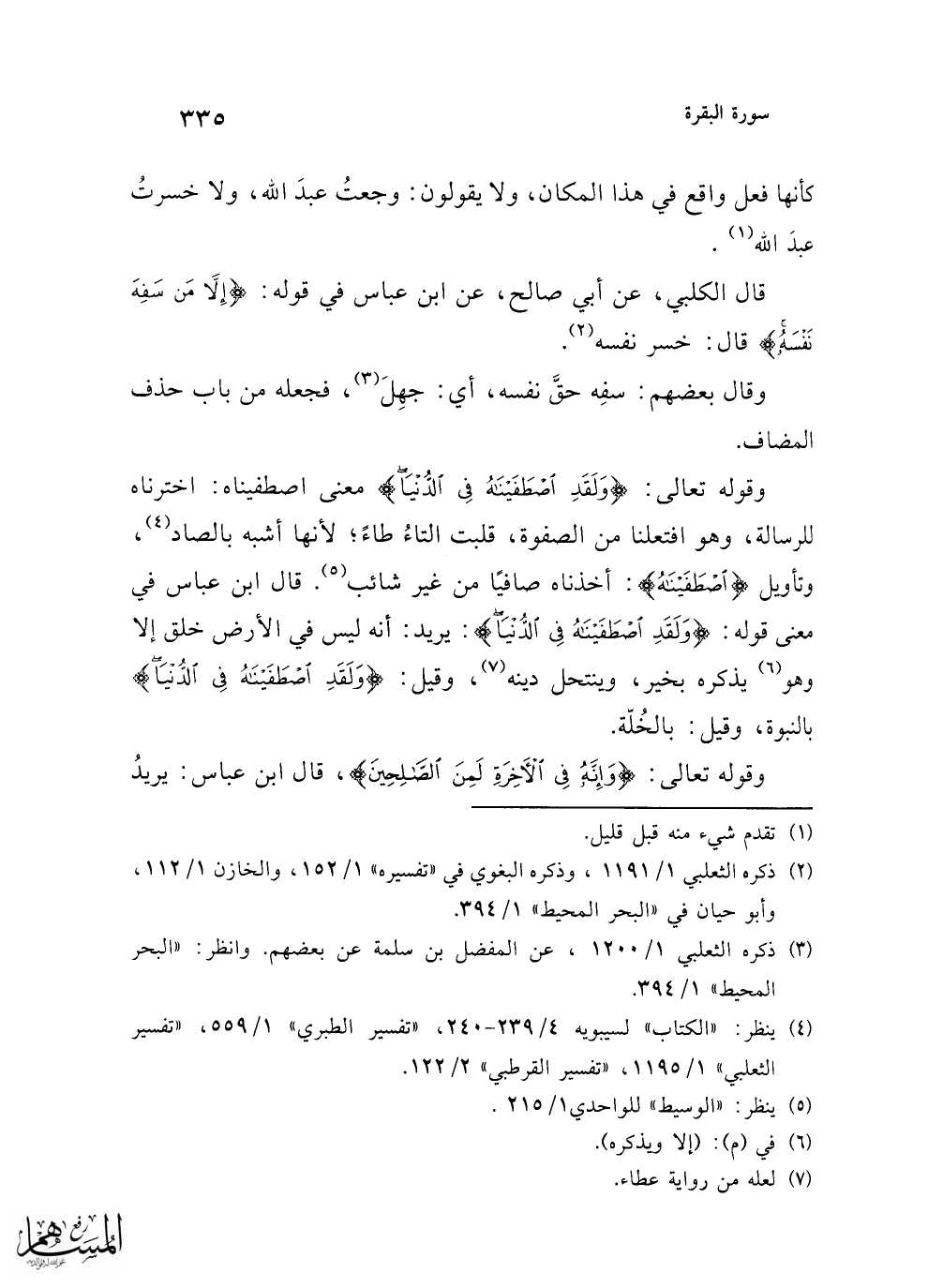(¬4) ينظر: "الكتاب" لسيبويه 4/ 239 - 240، "تفسير الطبري" 1/ 559، "تفسير الثعلبي" 1/ 1195، "تفسير القرطبي" 2/ 122.