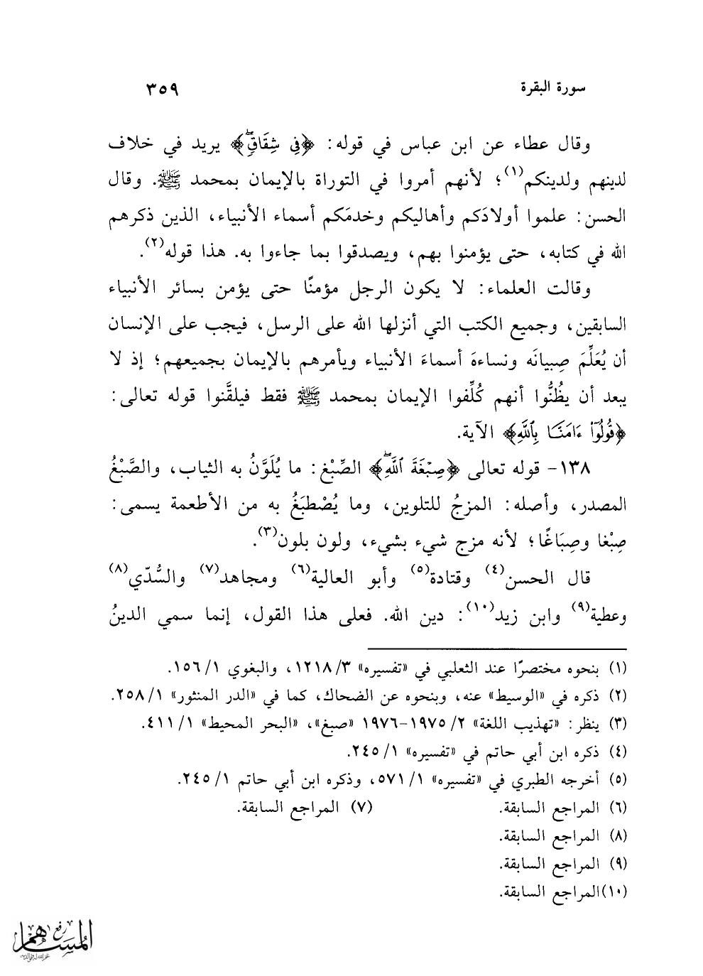 (¬3) ينظر: "تهذيب اللغة" 2/ 1975 - 1976 "صبغ"، "البحر المحيط" 1/ 411.