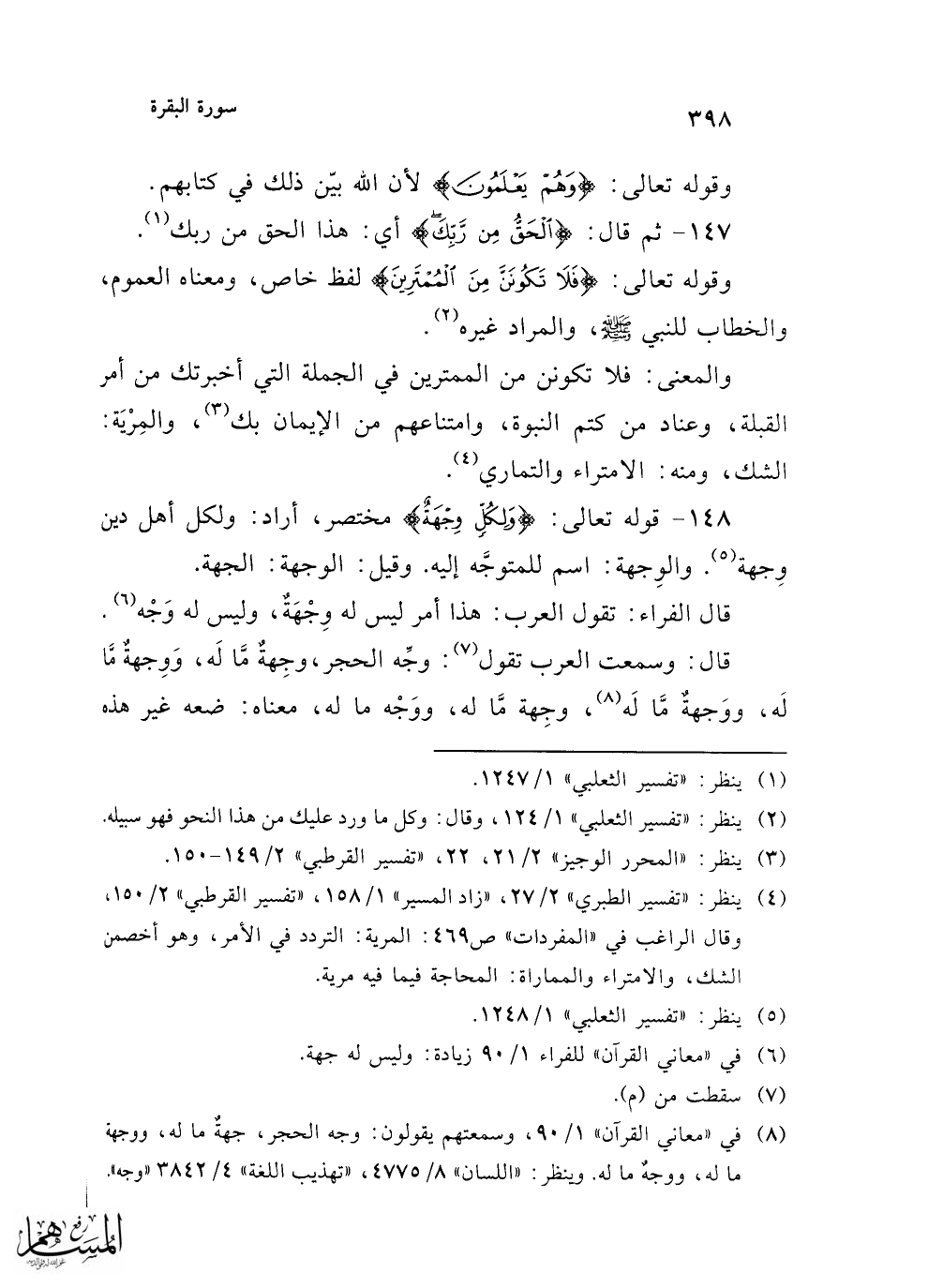 (¬3) ينظر: "المحرر الوجيز" 2/ 21، 22، "تفسير القرطبي" 2/ 149 - 150.